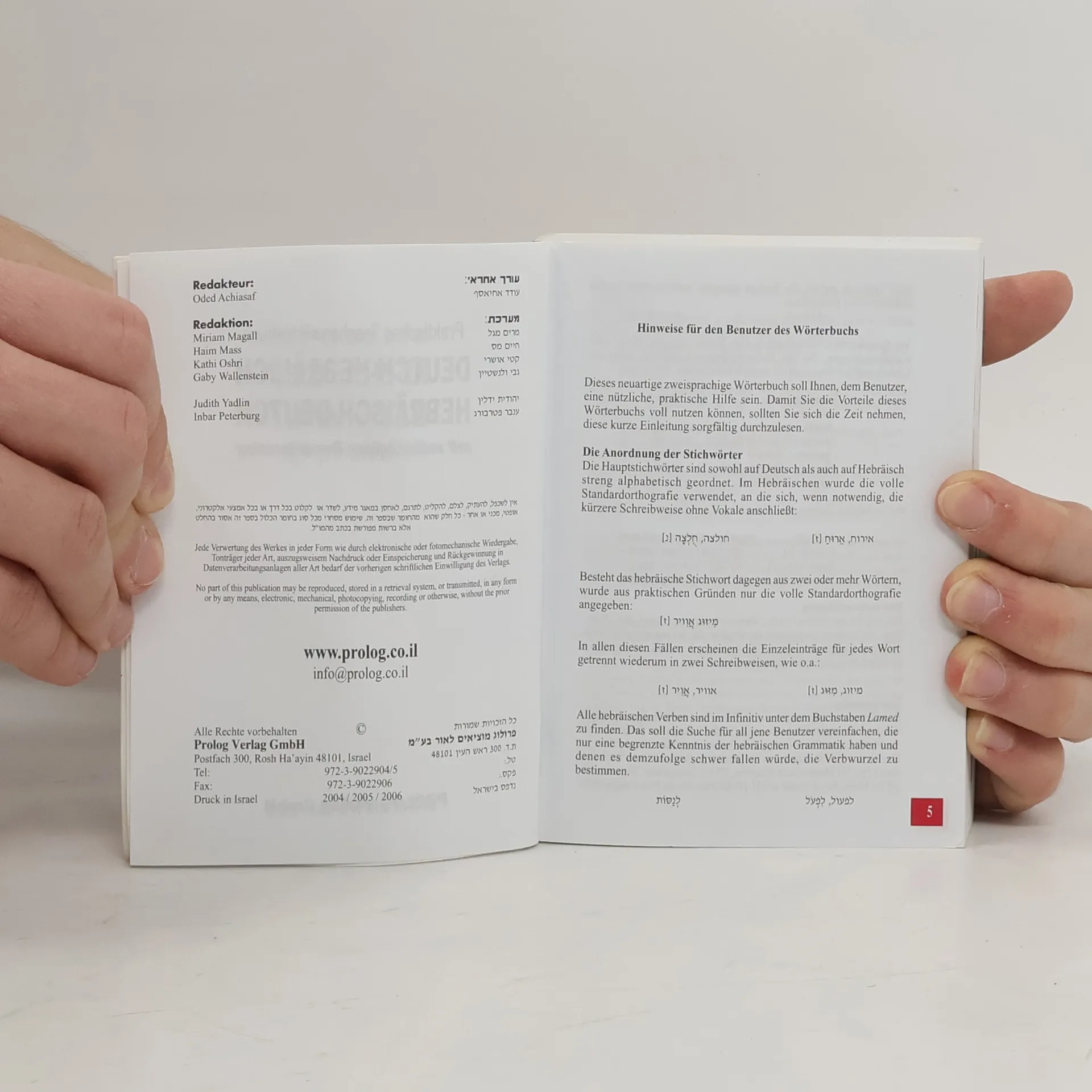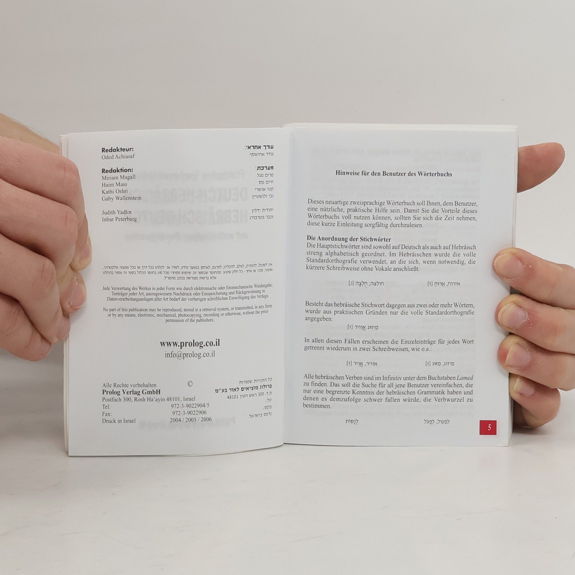 Zweisprachiges Wörterbuch Hebräisch - Deutsch Deutsch - Hebräisch im Taschanbuchformat. Mit vollständiger Lautschrift. Über 35.000 Stichwörter einschließlich Redewendungen und Umgangssprache. Leicht verständliche Transliteration mit Betonungszeichen für die korrekte Aussprache. In neuer Rechtschreibung mit Erklärungen für die Wahl der richtigen Übersetzung.