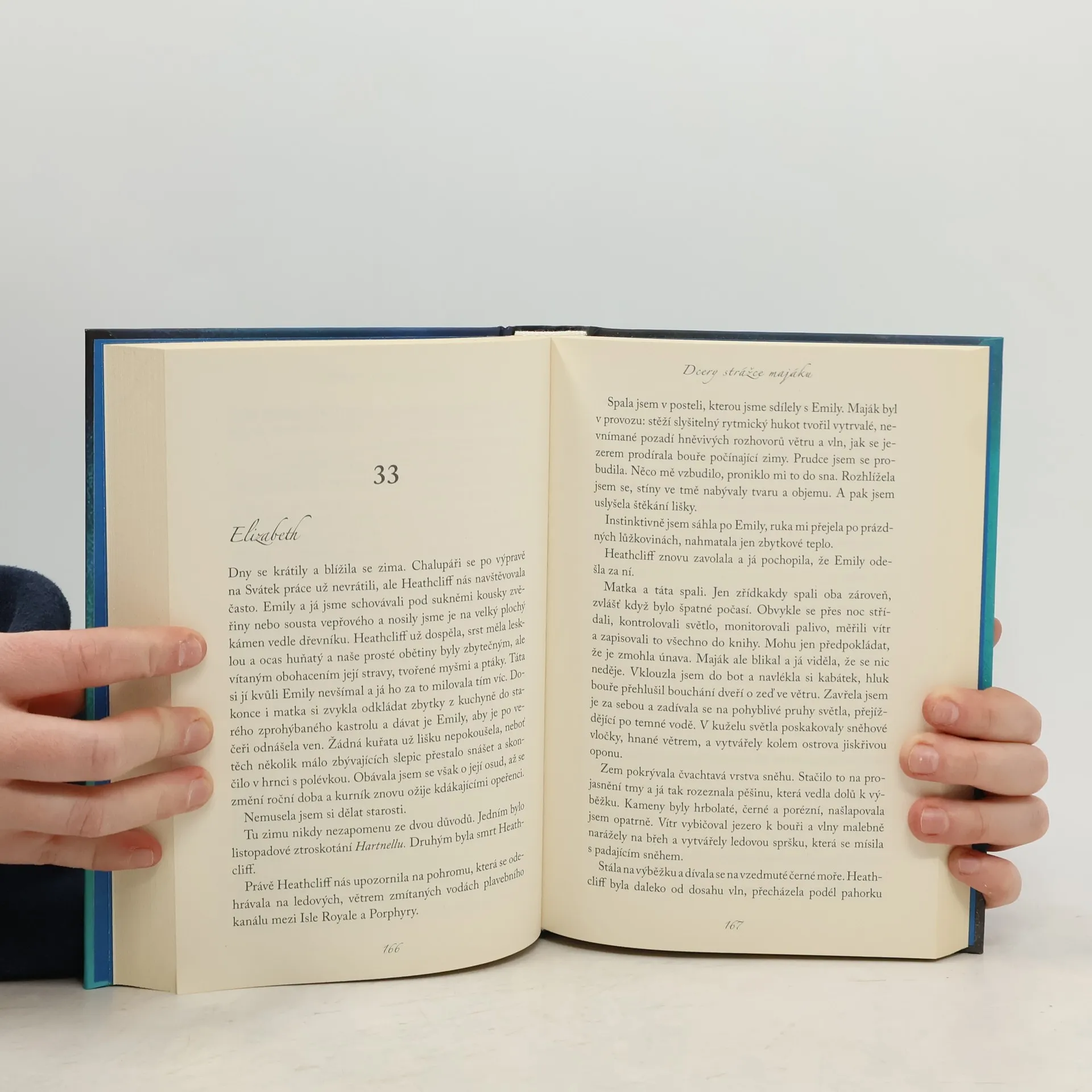 Elizabeth ztratila zrak. Už nemůže číst knihy, které miluje, ani nevidí obrazy, jež dojímaly její duši, ale pořád jí zbývá bystrá mysl a prázdnotu, způsobenou slepotou, vyplňuje hudba. Když se na ztroskotané lodi najdou deníky jejího otce, požádá o pomoc dospívající delikventku Morgan, která v rámci trestu za sprejerství koná obecně prospěšné práce v domově pro seniory, kde Elizabeth žije. Mezi oběma ženami při práci na dešifrování knih vznikne nečekaný vztah; obě upoutají události, které zaznamenal strážce majáku na ostrově Porphyry Island před více než 70 lety. Během práce zjišťují, že obě mají s tímto izolovaným ostrovem spojení, že se jejich životů dotklo Elizabethino záhadné dvojče Emily a krásné, i když drsné okolí Hořejšího jezera. Elizabeth však ve vybledlých stránkách otcových deníků nalezne víc tajemství, než tušila, a její vlastní identita se náhle vynoří v novém světle.