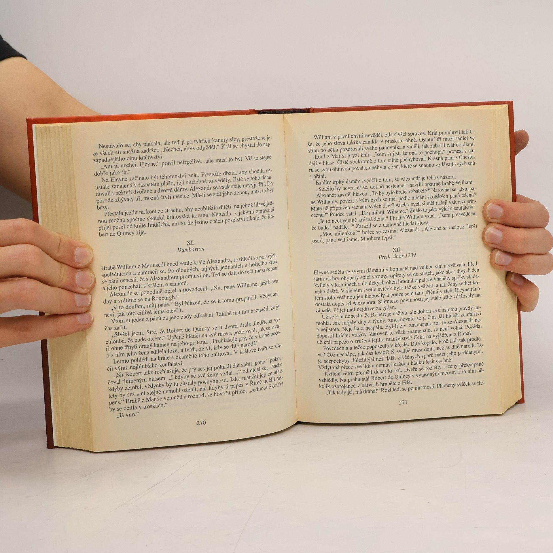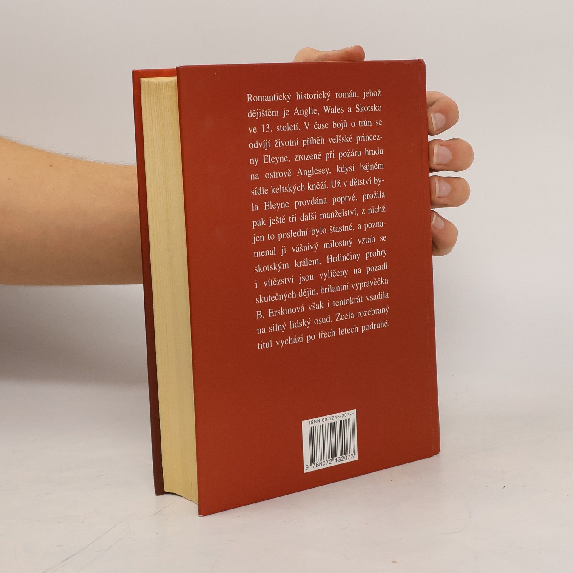 Romantický historický román, jehož dějištěm je Anglie, Wales a Skotsko ve 13. století. V dramatickém čase bojů o trůn se odvíjí dlouhý a pohnutý životní příběh velšské princezny Eleyne, zrozené za požáru hradu na ostrově Anglesey, kdysi bájném sídle druidů. Už v dětství byla Eleyne provdána poprve, prožila pak ještě tři další manželství, z nichž jen to poslední bylo šťastné, poznamenal ji osudový milostný vztah se skotským králem. Hrdinčiny prohry a vítězství, vášnivé lásky, mateřské radosti a trápení i její tajuplné schůzky s duchem královského milence jsou vylíčeny na pozadí skutečných dějinných událostí. Brilantní vypravěčka B. Erskinová však i tentokrát vsadila hlavně na silný lidský příběh.