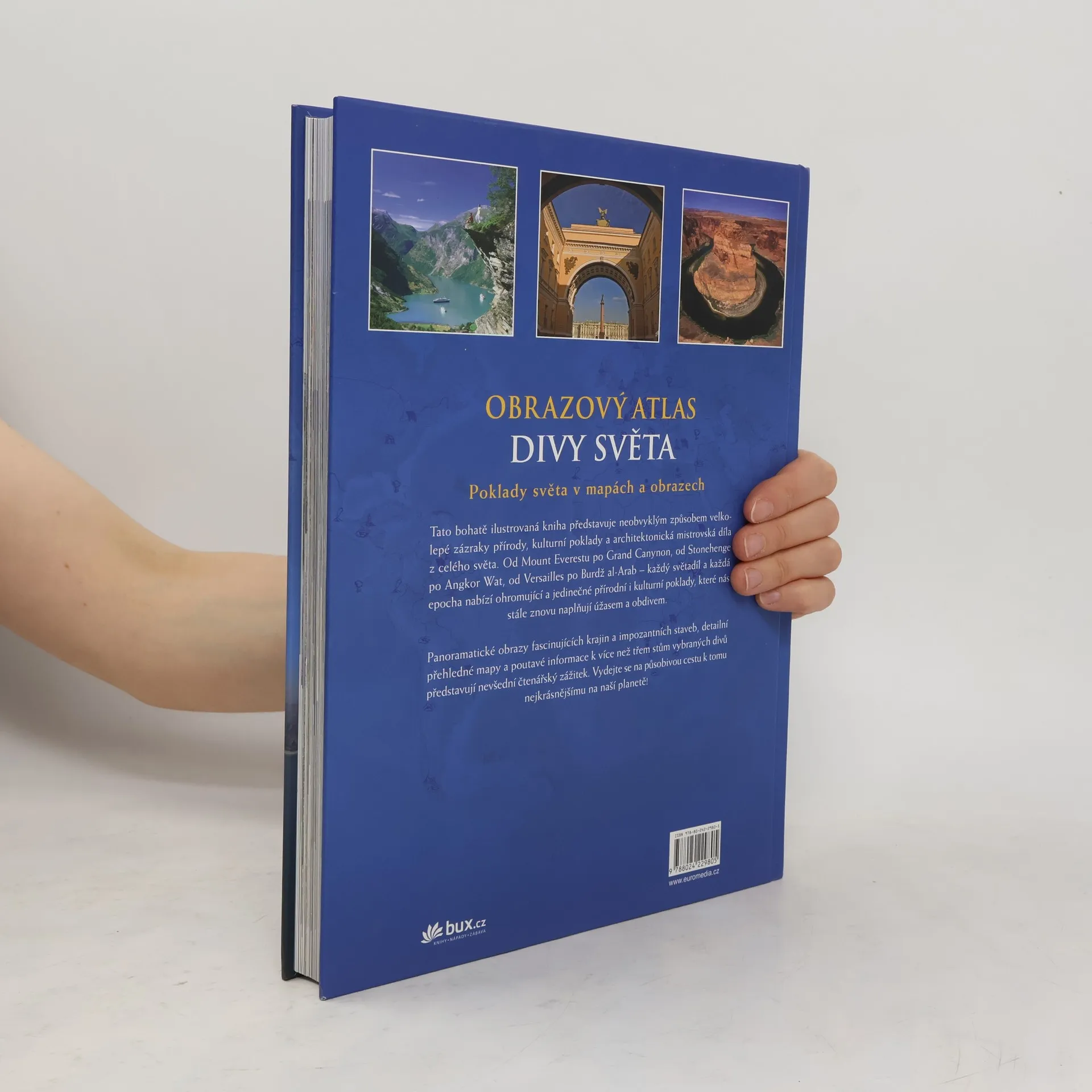 Obrazový atlas divů světa nabízí obrazy plné nádherných barev, poutavé informace a podrobné mapy k více než 300 nejpozoruhodnějších divů světa ze všech světadílů a epoch. Přehledné mapy a vysvětlující komentáře v rámečcích doplňují poutavě podávané základní informace o stavbách a krajinách. Tato bohatě ilustrovaná kniha nadchne každého, kdo se zajímá o kulturu a kdo rád cestuje do dalekých končin!