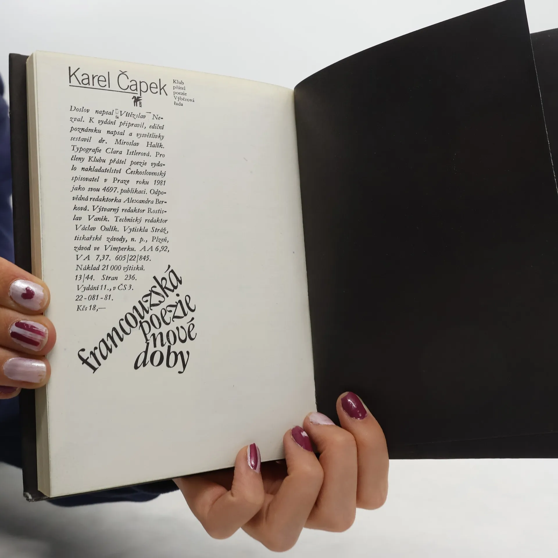 Slavný a pro nejmladší české básníky po první světové válce objevitelský význam mající překlad plejády francouzských básníků od Ch. Baudelaira přes generaci „prokletých" až k vrcholům symbolismu. Doslov napsal Vítězslav Nezval, k vydání připravil, ediční poznámku a vysvětlivky sestavil dr. Miroslav Halík. Jedenácté vydání.