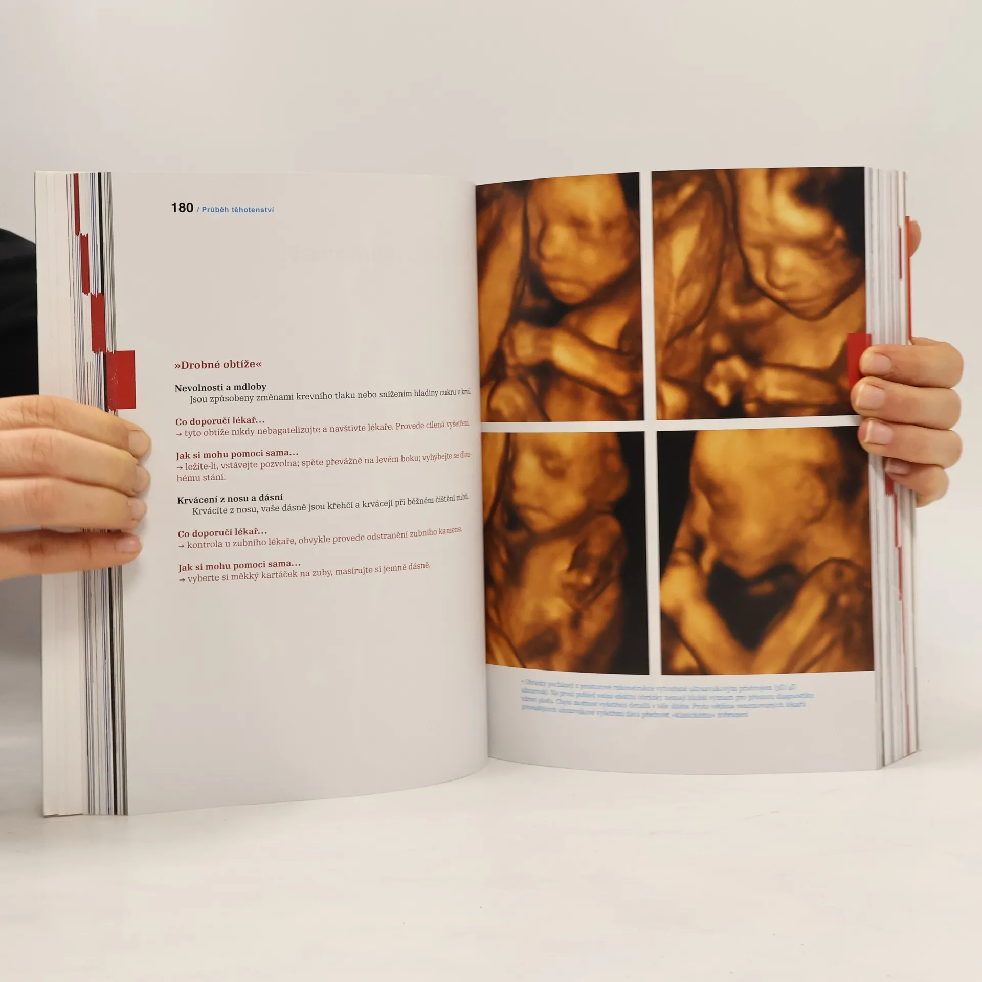 Čtvrté vydání úspěšné publikace přehledně popisuje zásady plánovaného rodičovství a způsoby přirozeného i umělého otěhotnění. Sleduje změny v těhotné ženě, vývoj zárodku a plodu po týdnech a měsících. Nové vydání obsahuje unikátní embryologické fotografie a informace o předporodní péči v České republice, hygienických návycích a životosprávě těhotné ženy. Doplňuje také informace o cvičení a používání volně dostupných léků v těhotenství. Podrobně je popsán porod, včetně přirozeného a operačního, a všechny známé metody tišení bolesti, od nefarmakologických po epidurální analgezii. V kapitole o šestinedělí se zdůrazňuje vliv kojení na dítě a nově je zahrnuta kapitola o očkování. Zmiňují se také příčiny rizikového těhotenství a nepravidelně probíhající porod. Na závěr jsou uvedeny informace o moderní antikoncepci, což reflektuje současnou situaci, kdy si rodiče mohou přát děti. Kniha zahrnuje popis vývoje dítěte do dvou let a je doplněna ilustracemi, fotografiemi a záběry českých celebrit. První vydání publikace bylo oceněno Charvátovou cenou za popularizaci vědy.