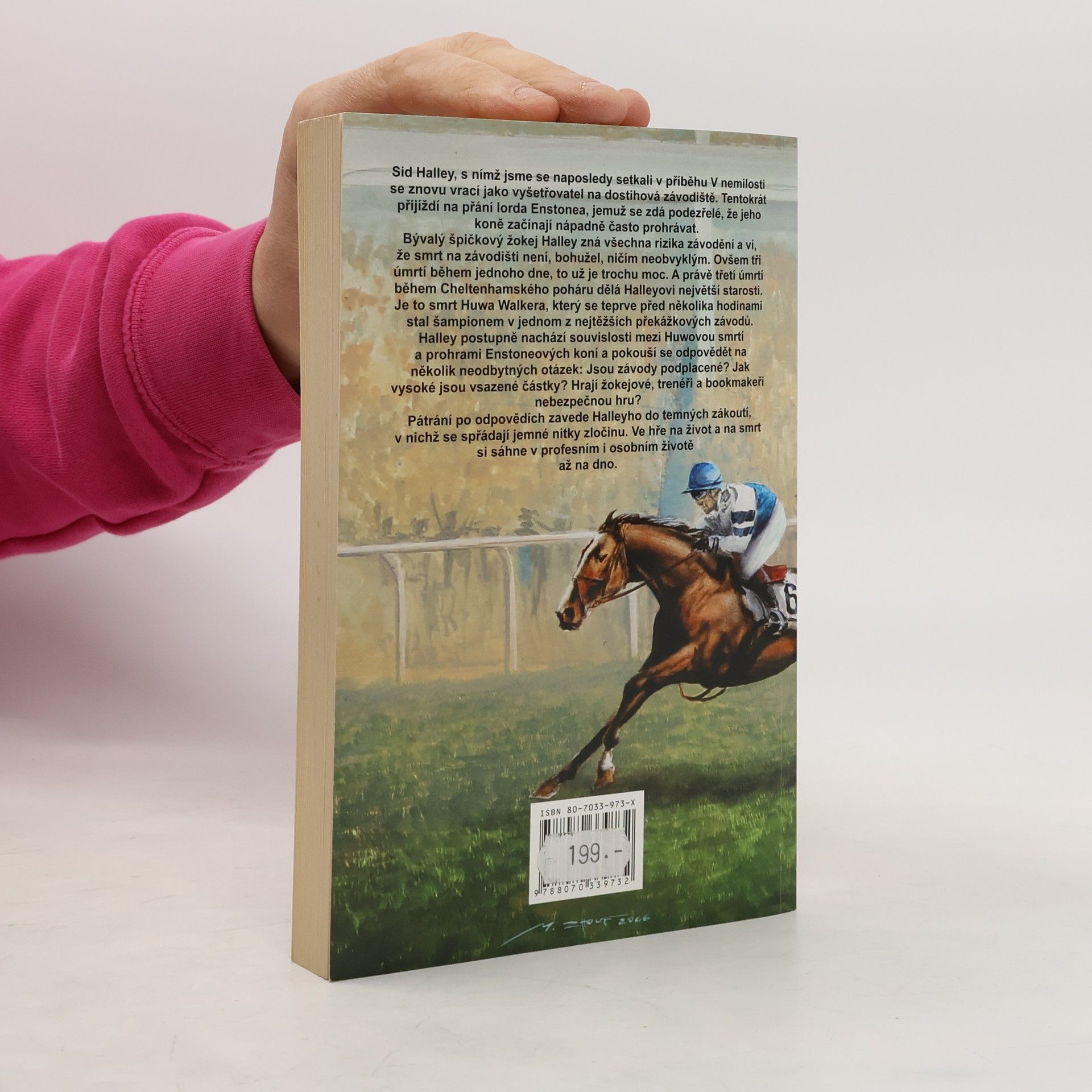 Sid Halley, s nímž jsme se naposledy setkali v příběhu V nemilosti se znovu vrací jako vyšetřovatel na dostihová závodiště. Tentokrát přijíždí na přání lorda Enstonea, jemuž se zdá podezřelé, že jeho koně začínají nápadně často prohrávat. Bývalý špičkový žokej Halley zná všechna rizika závodění a ví, že smrt na závodišti není, bohužel, ničím neobvyklým. Ovšem tři úmrtí během jednoho dne, to už je trochu moc. A právě třetí úmrtí během Cheltenhamského poháru dělá Halleyovi největší starosti. Je to smrt Huwa Walkera, který se teprve před několika hodinami stal šampionem v jednom z nejtěžších překážkových závodů. Halley postupně nachází souvislosti mezi Huwovou smrtí a prohrami Enstoneových koní a pokouší se odpovědět na několik neodbytných otázek: Jsou závody podplacené? Jak vysoké jsou vsazené částky? Hrají žokejové, trenéři a bookmakeři nebezpečnou hru? Pátrání po odpovědích zavede Halleyho do temných zákoutí, v nichž se spřádají jemné nitky zločinu. Ve hře na život a na smrt si sáhne v profesním i osobním životě až na dno.