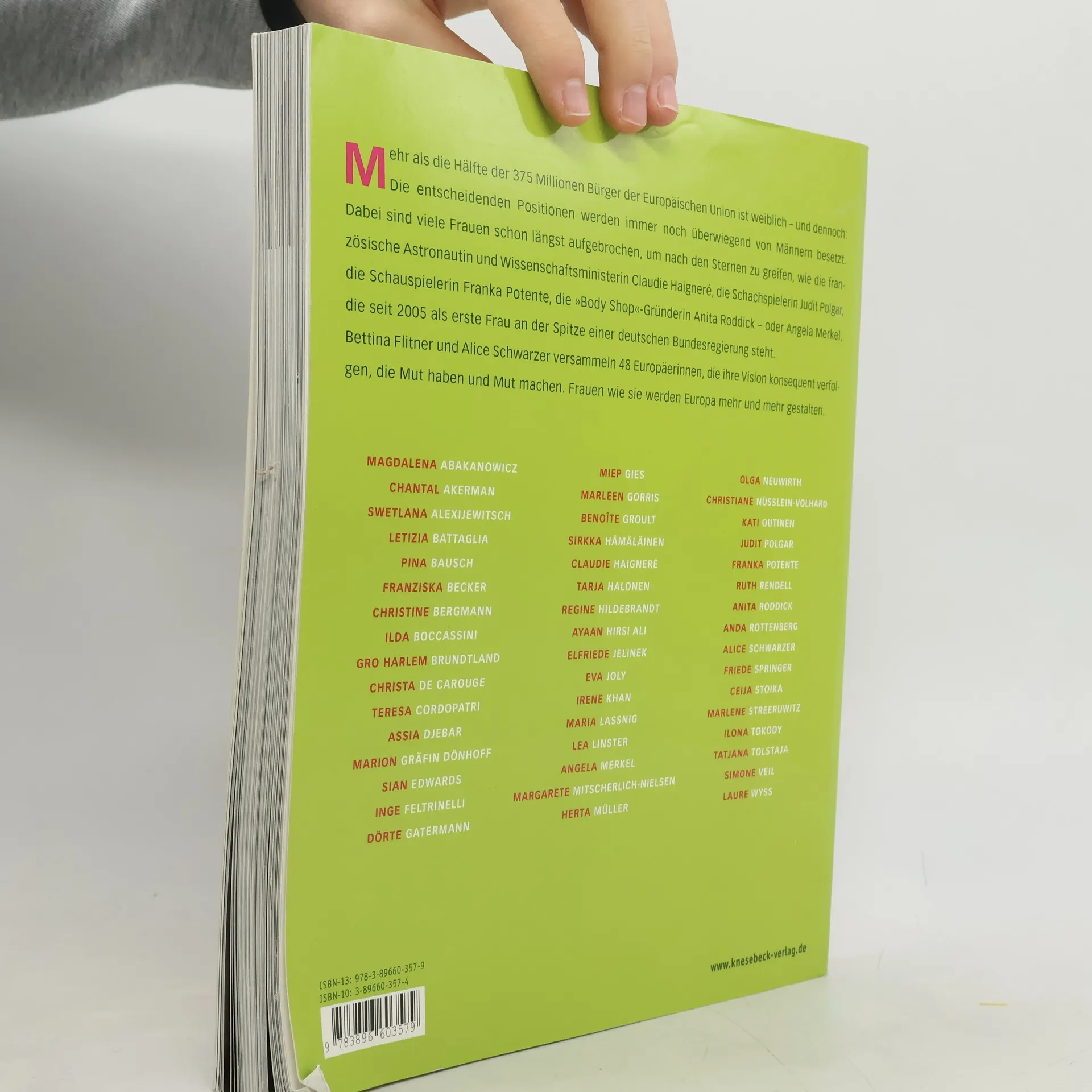 Mehr als die Hälfte der 375 Millionen Bürger der Europäischen Union ist weiblich – und dennoch: Die entscheidenden Positionen werden immer noch überwiegend von Männern besetzt. Dabei sind viele Frauen schon längst aufgebrochen, um nach den Sternen zu greifen, wie die französische Astronautin und Wissenschaftsministerin Claudie Haigneré, die Schachspielerin Judit Polgar, die Schauspielerin Franka Potente, die „Body Shop“-Gründerin Anita Roddick – oder Angela Merkel, die seit 2005 als erste Frau an der Spitze einer deutschen Bundesregierung steht. Bettina Flitner und Alice Schwarzer versammeln 48 Europäerinnen, die ihre Vision konsequent verfolgen, die Mut haben und Mut machen. Frauen wie sie werden Europa mehr und mehr gestalten.