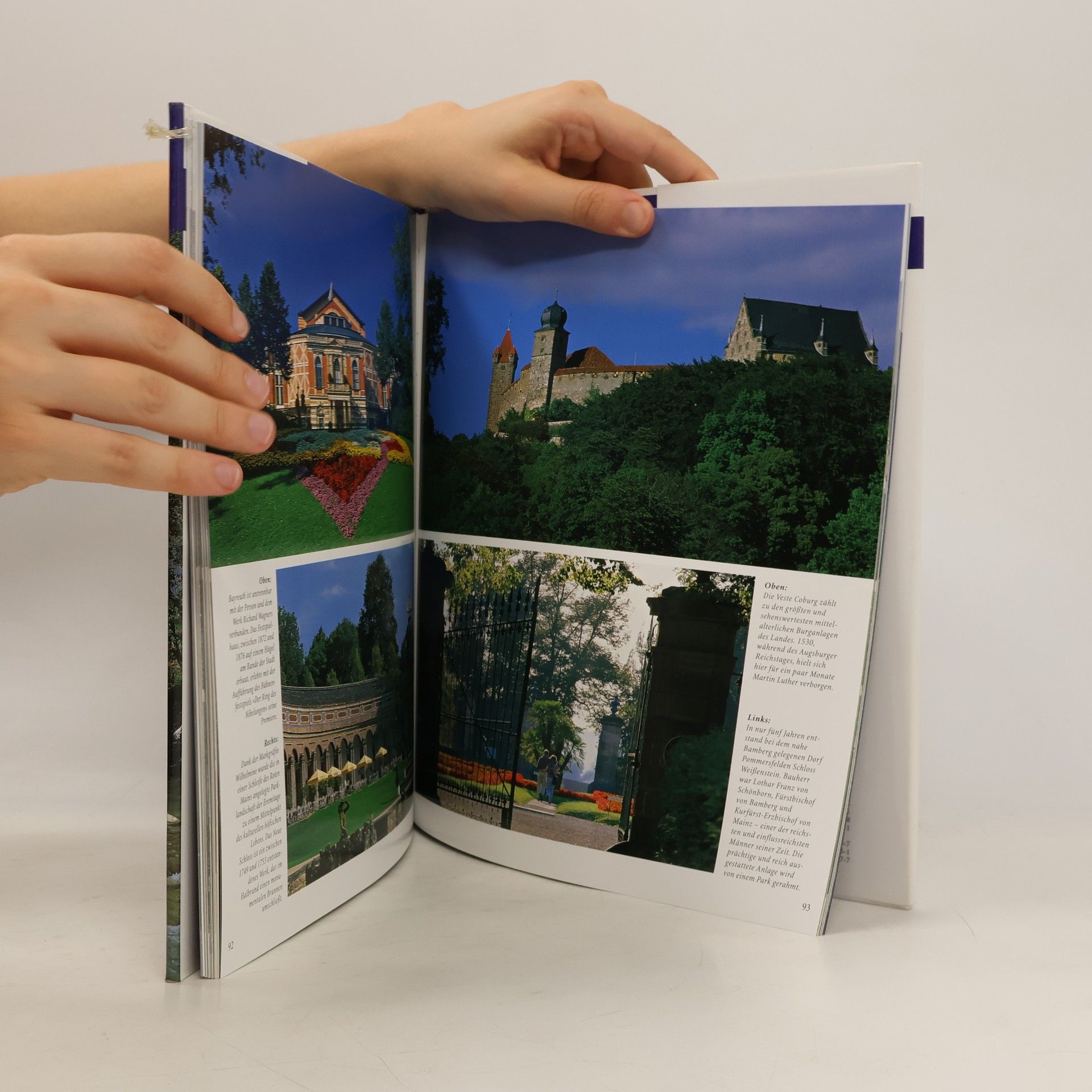 Die majestätische Bergwelt mit dem höchsten Gipfel Deutschlands, der Zugspitze, über hundert Seen in den bayerischen Alpen, Münchner Atmosphäre um den Viktualienmarkt, mittelalterliche Städtchen wie Rothenburg und Nürnberg, Feste wie das weltbekannte Oktoberfest machen Bayern zu einer der beliebtesten Reiseregionen Deutschlands. Mit Stolz werden hier alte Traditionen gelebt, in mancher ländlichen Gegend scheint die Zeit stehen geblieben zu sein. Reich gesegnet ist der Landstrich mit seinen Bauwerken und Kulturstätten: Burgen und die Märchenschlösser des König Ludwig, Kirchen wie die berühmte Wieskirche oder der Bamberger Dom, Theater- beziehungsweise Opernbühnen wie das Festspielhaus in Bayreuth. 191 Bilder zeigen ganz Bayern in seiner Urwüchsigkeit und Vielfalt, vier Specials berichten unter anderem über das Nationalgetränk Bier und die traditionellen Feste und Bräuche.