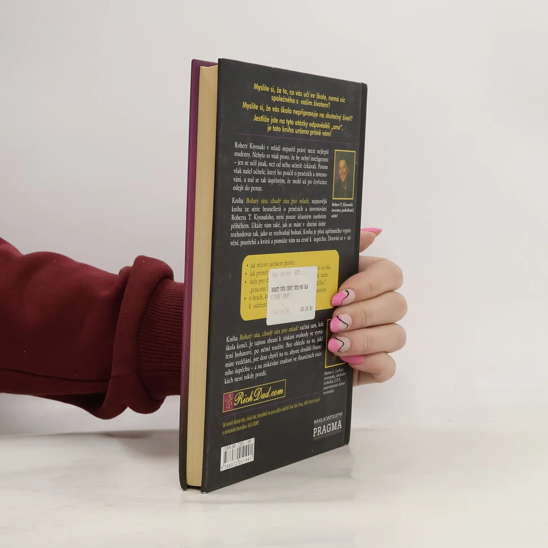 Myslíte si, že to, co vás učí ve škole, nemá nic společného s vaším životem? Myslíte si, že vás škola nepřipravuje na skutečný život? Jestliže jste na tyto otázky odpověděli "ano", je tato kniha určena právě vám! Robert Kiyosaki v mládí nepatřil právě mezi nejlepší studenty. Nebylo to však proto, že by nebyl inteligentní - jen se učil jinak, než od něho učitelé čekávali. Potom však našel učitele, který ho poučil o penězích a investování, a stal se tak úspěšným, že mohl už po čtyřicítce odejít do penze. Kniha Bohatý táta, chudý táta pro mladé, nejnovější kniha ze série bestsellerů o penězích a investování Roberta T. Kiyosakiho, není pouze úžasným osobním příběhem. Ukáže vám také, jak se máte v dnešní době rozhodovat tak, jako se rozhodují bohatí. Kniha je plná upřímného vyprávění, postřehů a kvízů a pomůže vám na cestě k úspěchu. Dozvíte se v ní: . jak mluvit jazykem peněz, . jak přimět peníze, aby pracovaly pro vás a za vás, . rady pro dosažení úspěchu - včetně té, že máte "pracovat kvůli poznávání, a ne kvůli výdělku", . o hrách, které vám pomohou pochopit nástroje k udržení pohybu a rozmnožení peněz. Kniha Bohatý táta, chudý táta pro mladé začíná tam, kde škola končí. Je tajnou zbraní k získání svobody ve vytváření bohatství, po němž toužíte. Bez ohledu na to, jaké máte vzdělání, jste dost chytří na to, abyste dosáhli finančního úspěchu - a na získávání znalostí ve finančních otázkách není nikdy pozdě.