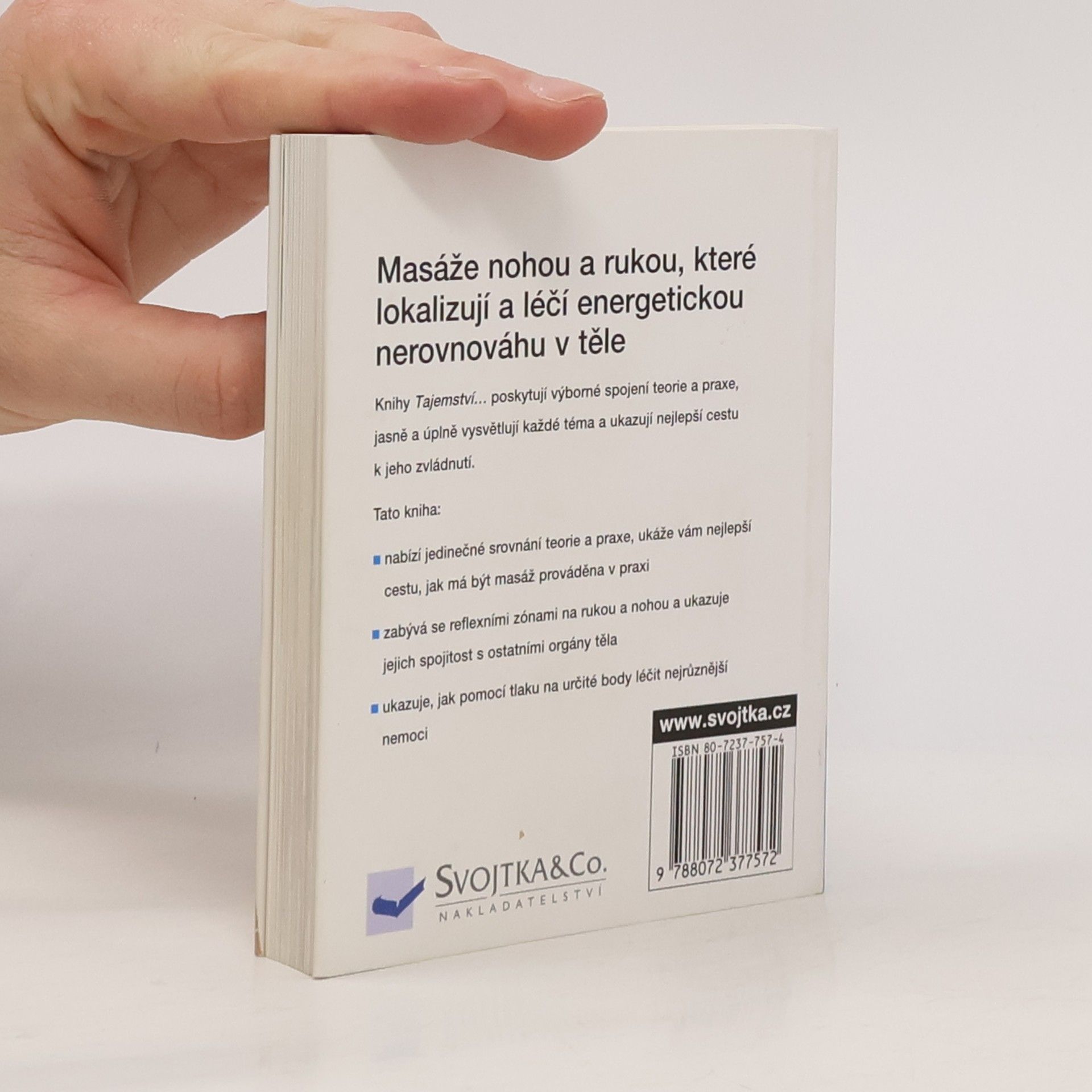 Masáže nohou a rukou, které lokalizují a léčí energetickou nerovnováhu v těle. Kniha nabízí jedinečné srovnání teorie a praxe, ukáže vám nejlepší cestu, jak má být masáž prováděna v praxi. Zabývá se reflexními zónami na rukou a nohou a ukazuje jejich spojitost s ostatními orgány těla. Ukazuje, jak pomocí tlaku na určité body léčit nejrůznější nemoci.