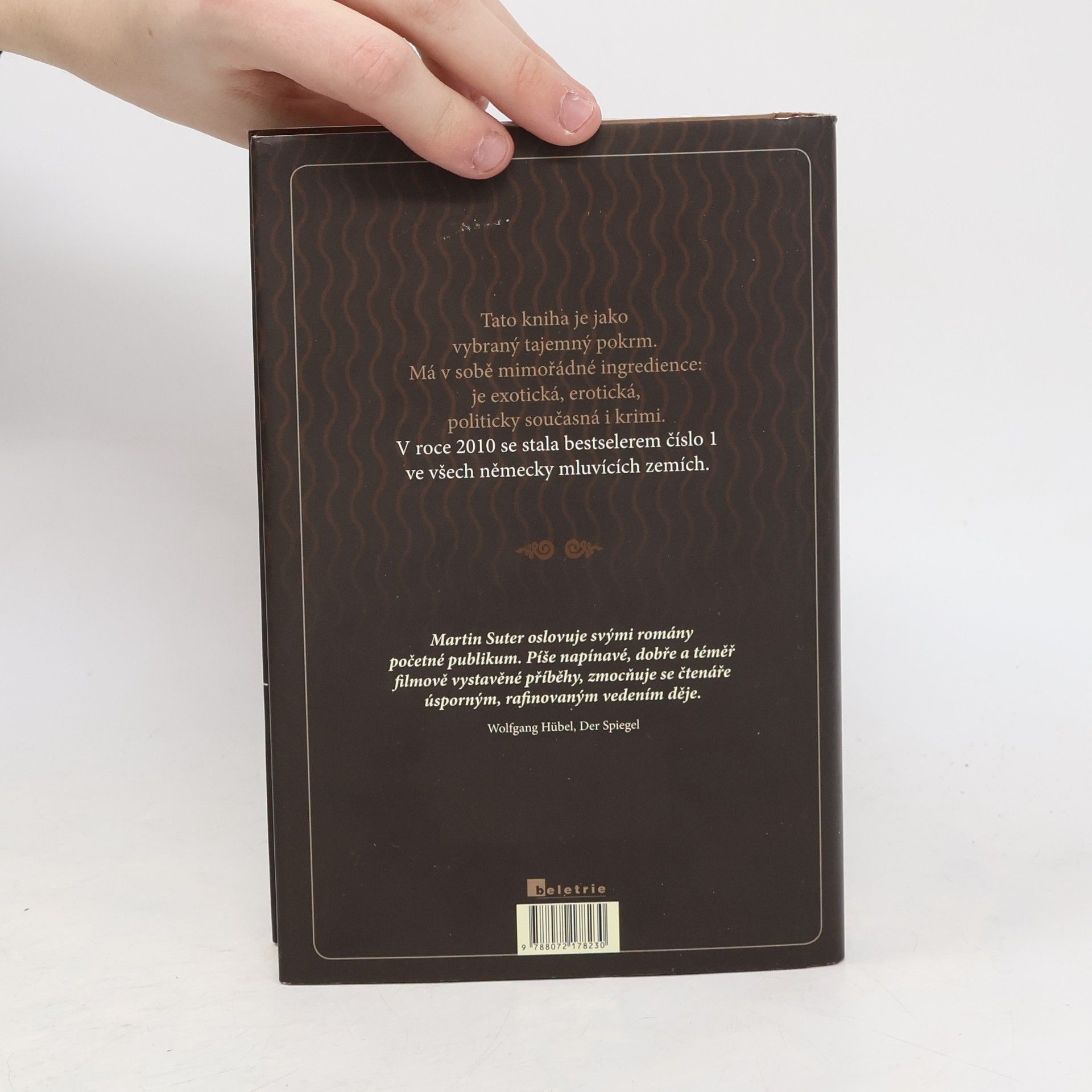 Ve svém novém románu kombinuje Martin Suter všechny podstatné ingredience delikátní literární hostiny: příchuť business thrilleru, trochu koření love story a další speciální přísady, které dohromady vytvářejí neodolatelné čtení. Maravan, mladý tamilský uprchlík, krájí zeleninu a myje nádobí v Huwyleru, švýcarské restauraci, kterou navštěvují novináři a finančníci. Není to ale jen obyčejný kuchař, na Šrí Lance, odkud pochází, byl specialistou na ájurvédskou kuchyni. Když mu jeho kolegyně Andrea nabídne, aby společně založili agenturu na přípravu speciálních afrodiziakových večeří, chvíli váhá. Kvůli potřebě zajistit rodinu je však nucen souhlasit.