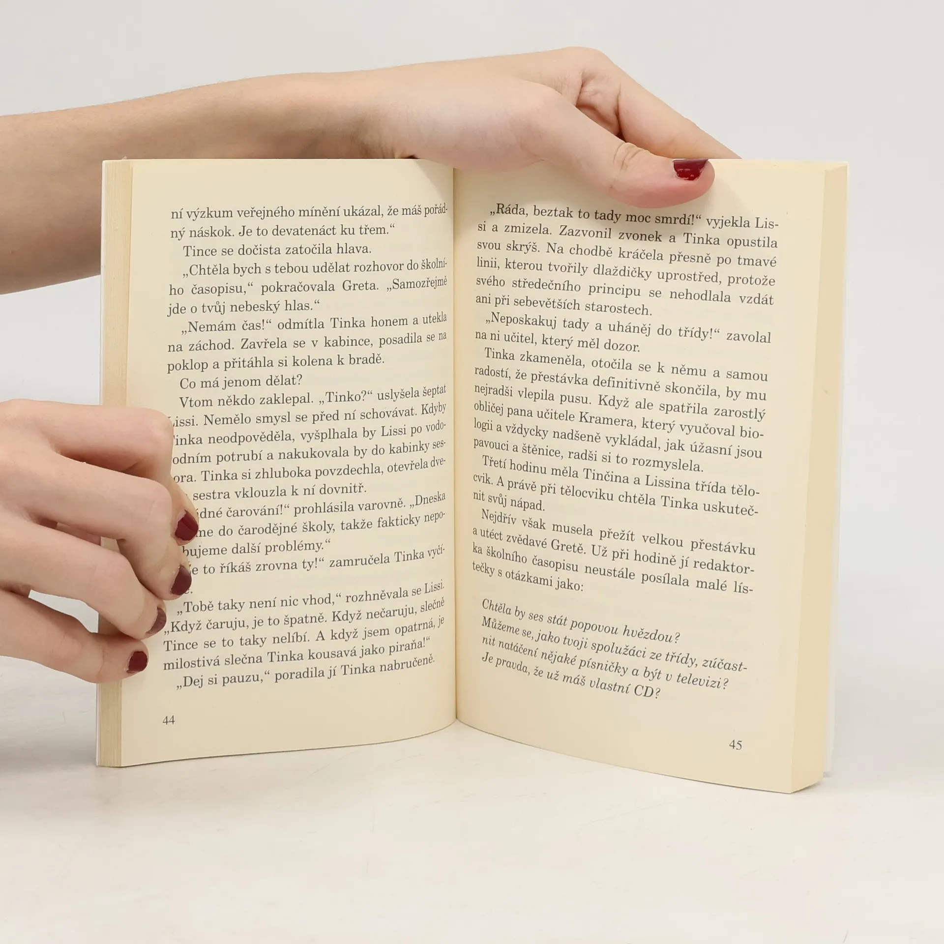 Ve třídě, do které chodí Tinka a Lissi, se bude volit nový mluvčí a Tinka po této funkci z celého srdce touží. Jenže když jí chce Lissi pomoct trochou čar a kouzel, začnou se věci pořádně komplikovat: obě sestry musí okamžitě nastoupit do čarodějné školy, kde na ně čekají neobyčejně těžké zkoušky. Pokud by v nich neobstály, hrozí, že přijdou o své čarodějné schopnosti... Pro čtenářky od 9 let.