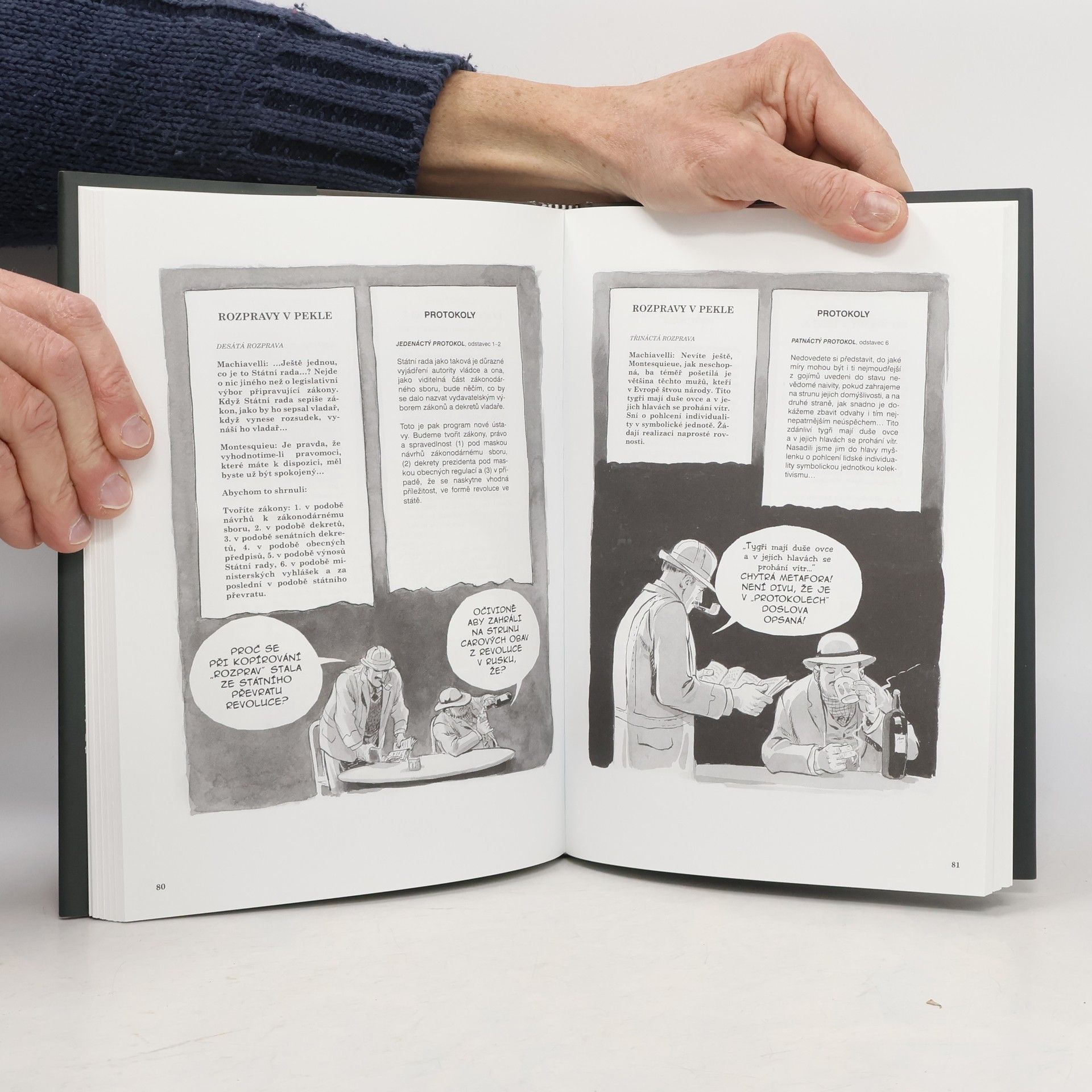 Eisnerovo líčení této podivuhodné historie začíná v Paříži devatenáctého století, kde agent ruské tajné služby narazí na starší francouzský politický pamflet a na jeho základě vytvoří nový dokument, který má židovské vůdce a bankéře namočit do spiknutí na ovládnutí světa. Během následujících let se z této účelové lži stala mezinárodně uznávaná pravda. Ani ctihodné londýnské Timesy, které toto falzum roku 1921 odhalily, již nedokázaly zabránit lavinovitému šíření Protokolů, jež byly záhy publikovány v desítkách zemí. Přisvojily si je četné rasistické organizace, strany a náboženství, ať už jde o nacisty, Ku-klux-klan či islámské fundamentalisty. A ačkoli byly od té doby opakovaně vyvráceny, nadále vycházejí v arabských, asijských i evropských zemích.