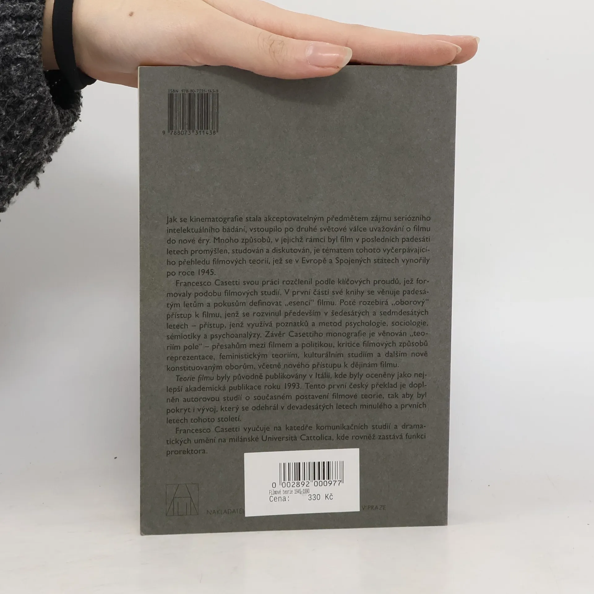 Jak se kinematografie stala akceptovatelným předmětem zájmu seriózního intelektuálního bádání, vstoupilo po druhé světové válce uvažování o filmu do nové éry. Mnoho způsobů, v jejichž rámci byl film v posledních padesáti letech promýšlen, studován a diskutován, je tématem tohoto vyčerpávajícího přehledu filmových teorií. Francesco Casetti svou práci rozčlenil podle klíčových proudů, jež formovaly podobu filmových studií. V první části své knihy se věnuje padesátým letům a pokusům definovat „esenci“ filmu. Poté rozebírá „oborový“ přístup k filmu, jenž využívá poznatků a metod psychologie, sociologie, sémiotiky a psychoanalýzy. Závěr Casettiho monografie je věnován „teoriím pole“ - přesahům mezi filmem a politikou, kritice filmových způsobů reprezentace, feministickým teoriím, kulturálním studiím a dalším nově konstituovaným oborům, včetně nového přístupu k dějinám filmu.