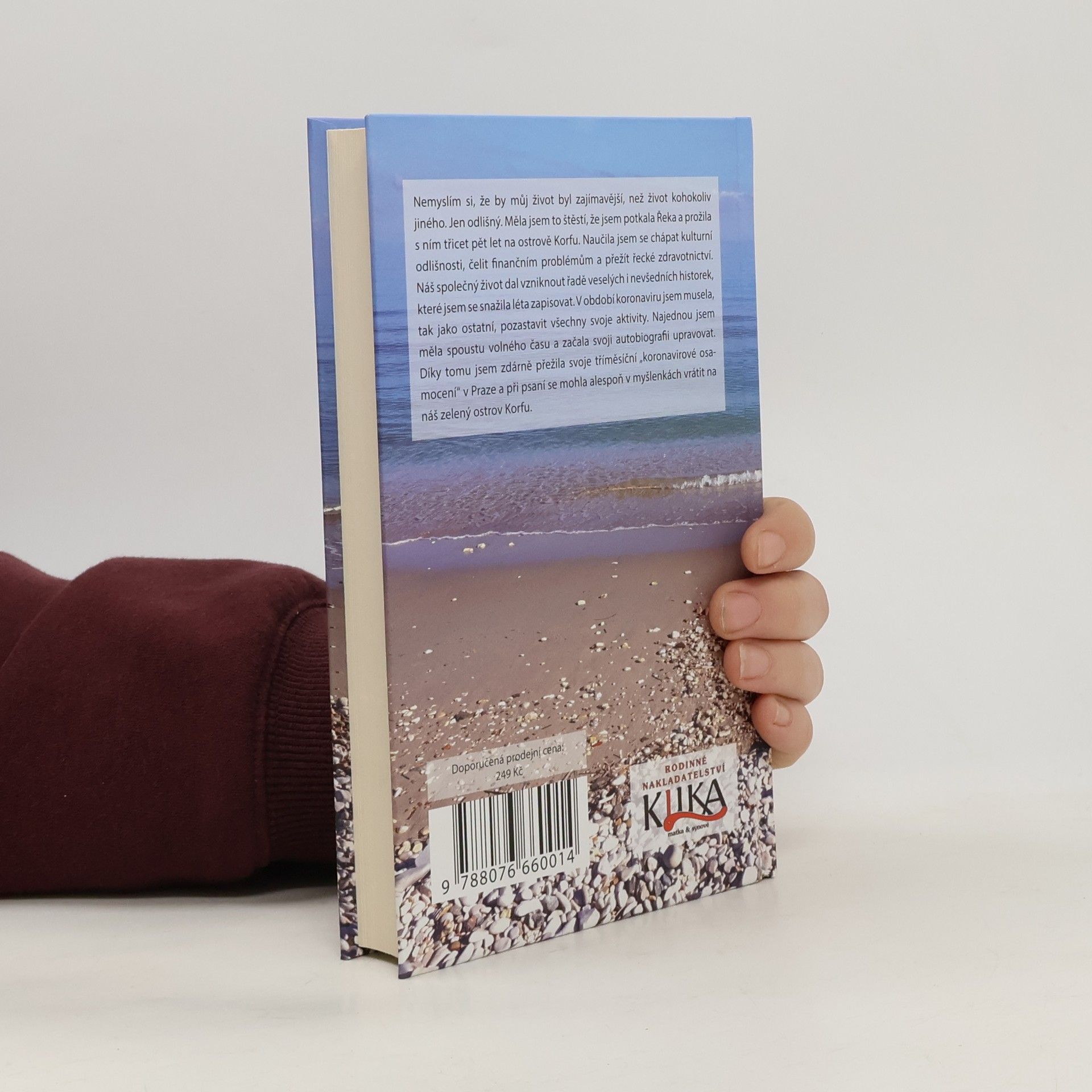 Nemyslím si, že by můj život byl zajímavější, než život kohokoliv jiného. Jen odlišný. Měla jsem to štěstí, že jsem potkala Řeka a prožila s ním třicet pět let na ostrově Korfu. Naučila jsem se chápat kulturní odlišnosti, čelit finančním problémům a přežít řecké zdravotnictví. Náš společný život dal vzniknout řadě veselých i nevšedních historek, které jsem se snažila léta zapisovat. V období koronaviru jsem musela, tak jako ostatní, pozastavit všechny svoje aktivity. Najednou jsem měla spoustu volného času a začala svoji autobiografii upravovat. Díky tomu jsem zdárně přežila svoje tříměsíční „koronavirové osamocení“ v Praze a při psaní se mohla alespoň v myšlenkách vrátit na náš zelený ostrov Korfu.