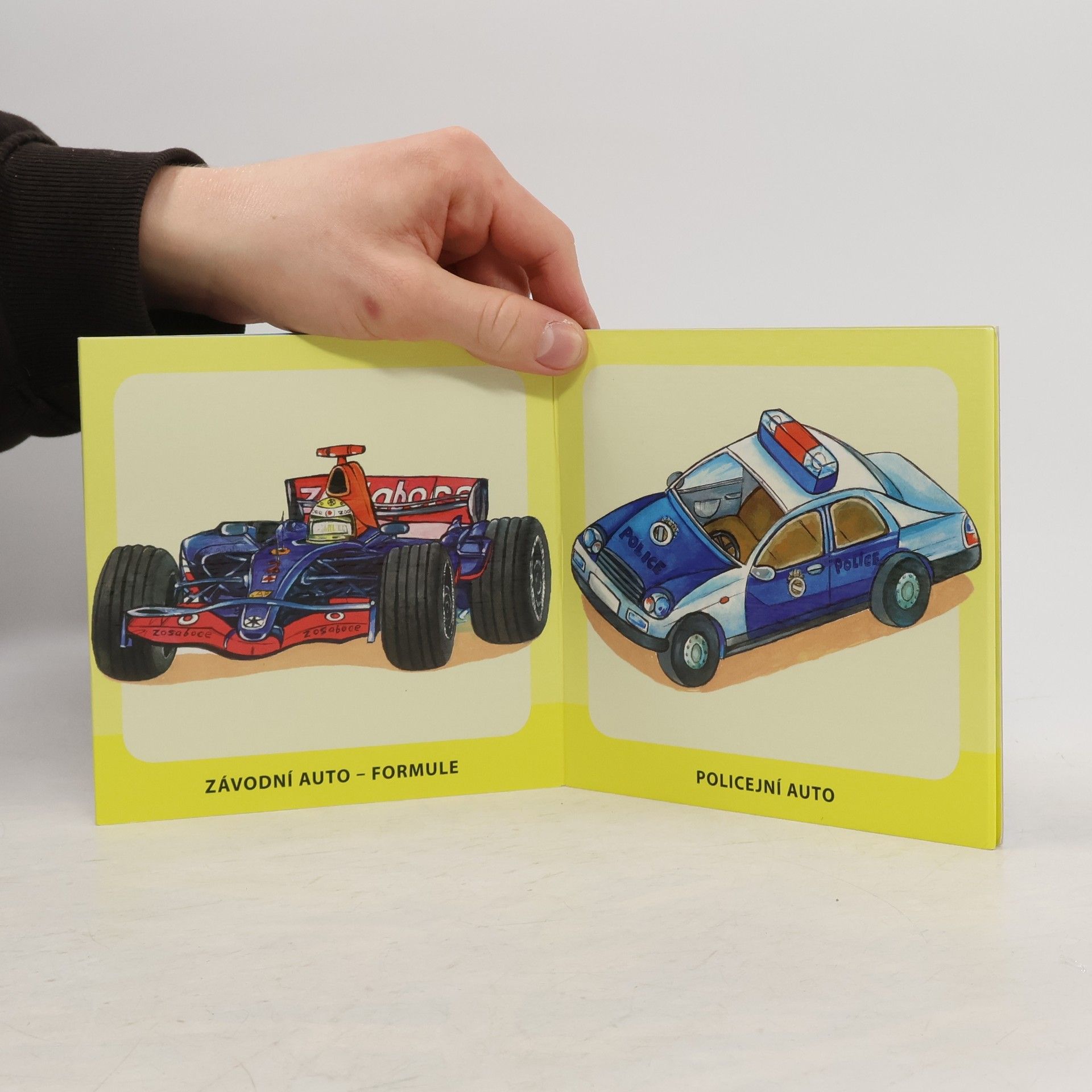 V tomto leporelku najdou děti obrázky dopravních prodtředků: auta nákladní, hasičská, policejní, letadýlka, lodě i vláčky.