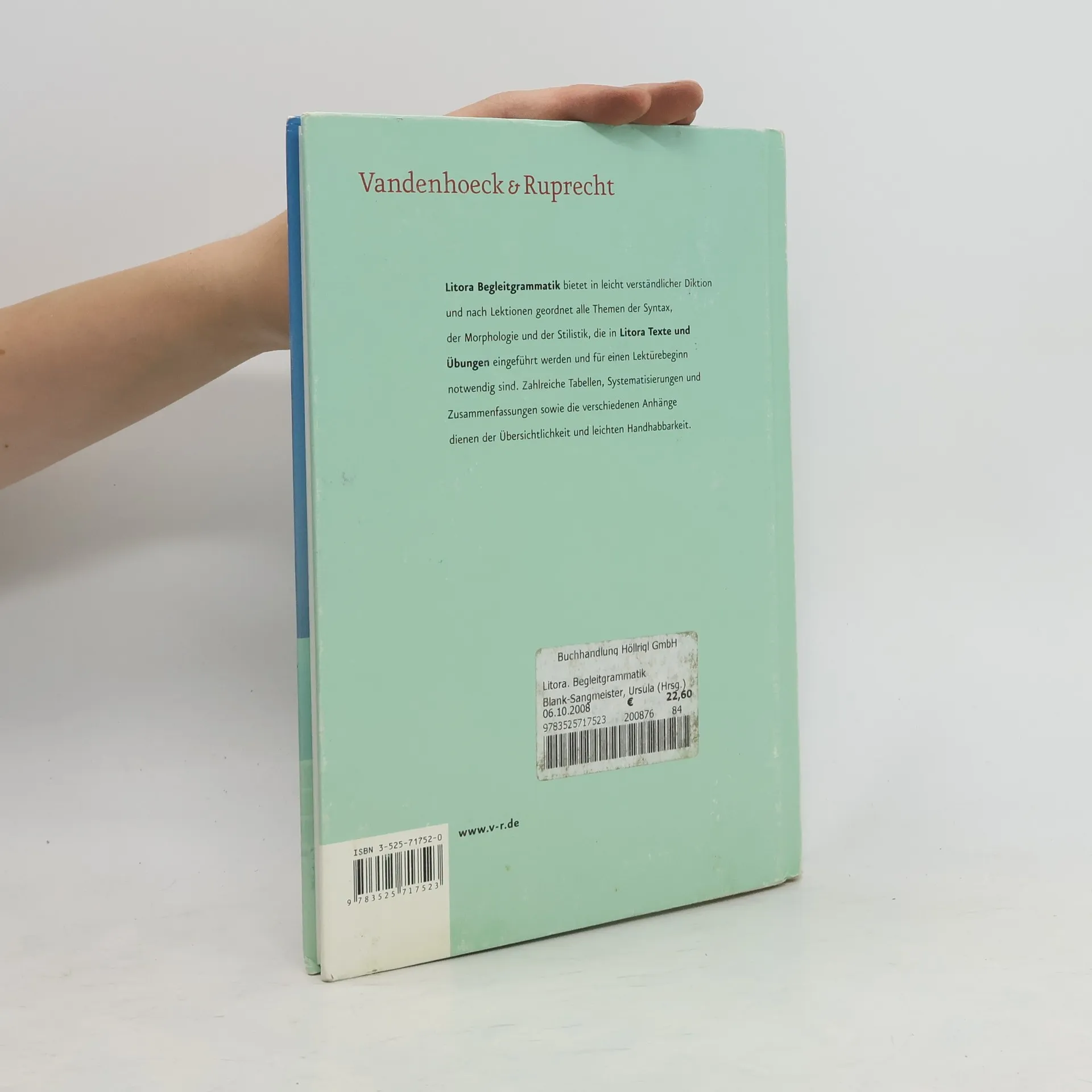 Die Begleitgrammatik bietet, nach Lektionen geordnet, alle Themen der Syntax, der Morphologie und der Stilistik, die in Litora. Texte und Ubungen eingefuhrt werden. Sie ist in leicht verstandlicher Diktion verfasst. Grosser Wert wurde auf Ubersichtlichkeit und praktische Handhabbarkeit gelegt; dem dienen z.B. zahlreiche Tabellen, Systematisierungen und Zusammenfassungen sowie die verschiedenen Anhange.