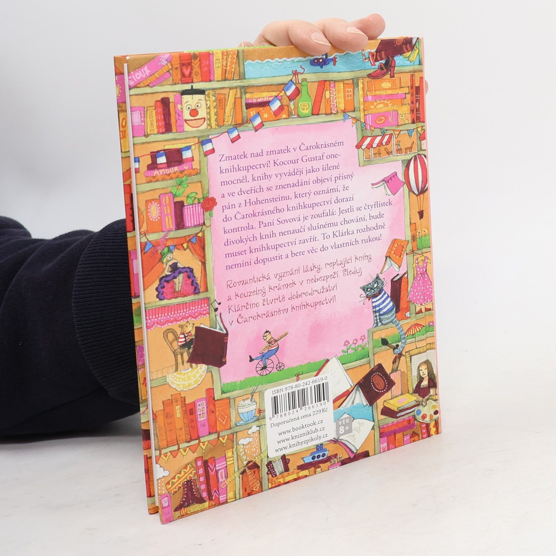 Zmatek nad zmatek v Čarokrásném knihkupectví! Kocour Gustaf onemocněl, knihy vyvádějí jako šílené a do obchůdku má dorazit kontrola! Paní Sovová je zoufalá: Jestli se čtyřlístek divokých knih nenaučí slušnému chování, bude muset knihkupectví zavřít. To Klárka rozhodně nemíní dopustit a bere věc do vlastních rukou! Romantická vyznání lásky, reptající knihy a Čarokrásné knihkupectví v nebezpečí. Sleduj Klárčino čtvrté dobrodružství. Kniha je určena dětem od 8 let.