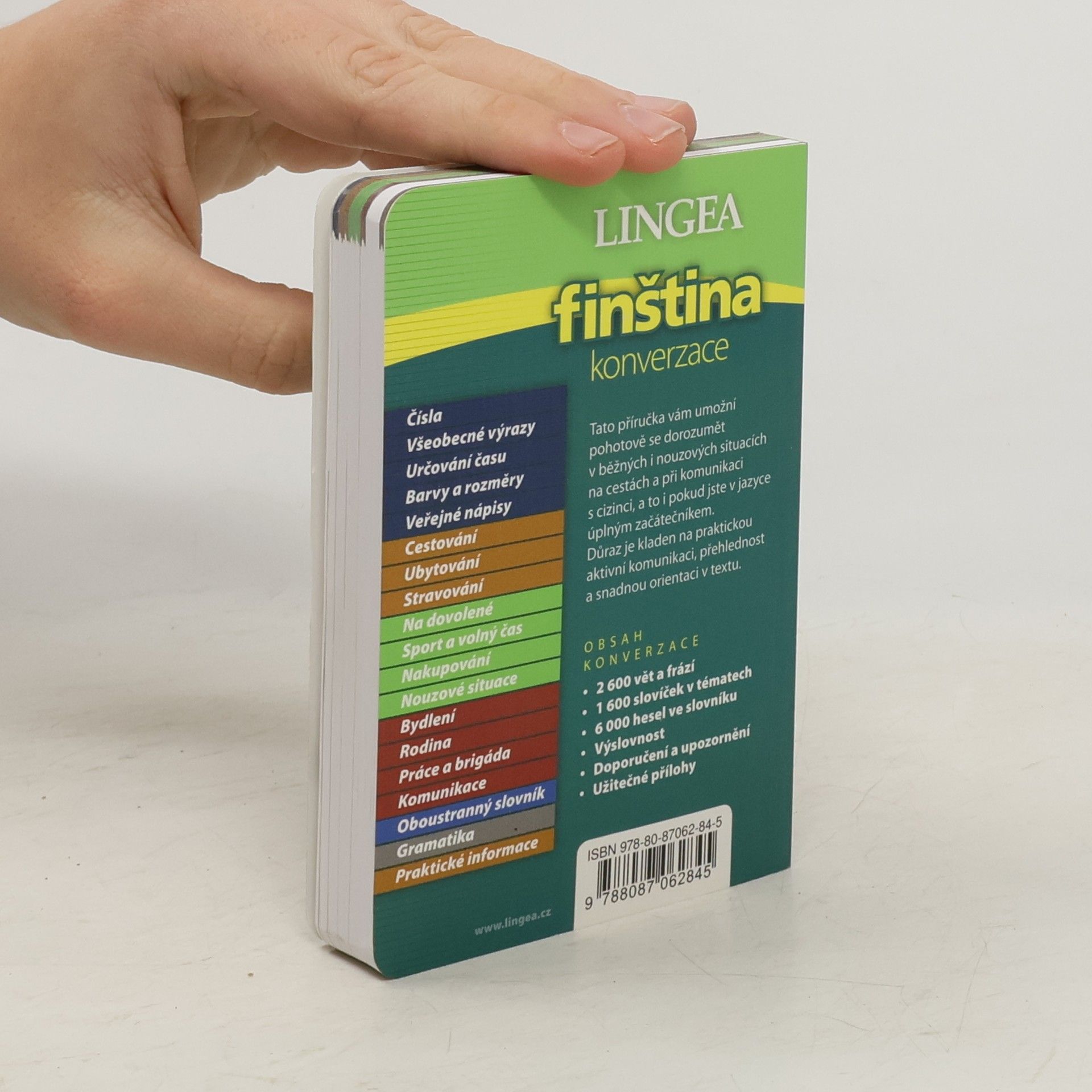 Unikátní konverzace se slovníkem a gramatikou. Přehledné členění do tematických bloků umožňuje rychlou orientaci v textu, současně usnadňuje i dorozumění se v běžných i nouzových situacích na cestách a při komunikaci s cizinci, a to i úplným začátečníkům. Důraz je kladen na praktickou aktivní komunikaci, přehlednost a snadnou orientaci v textu. Obsahuje šestnáct tematických oddílů. U všech uvedených vět a frází je doplněna výslovnost. Součástí této příručky je také slovník a stručný přehled gramatiky. Důležité informace o zemích s tipy na návštěvu zajímavých míst a památek i užitečnými postřehy a doporučeními najdete v kapitole Praktické informace a v krátkých poznámkách u jednotlivých oddílů. Obálka je doplněna orientačními mapkami. Obsah slovníku 320 stran 2 600 vět a frází 1 600 slovíček a témat 6 000 hesel ve slovníku Výslovnost Doporučení a upozornění Užitečné přílohy