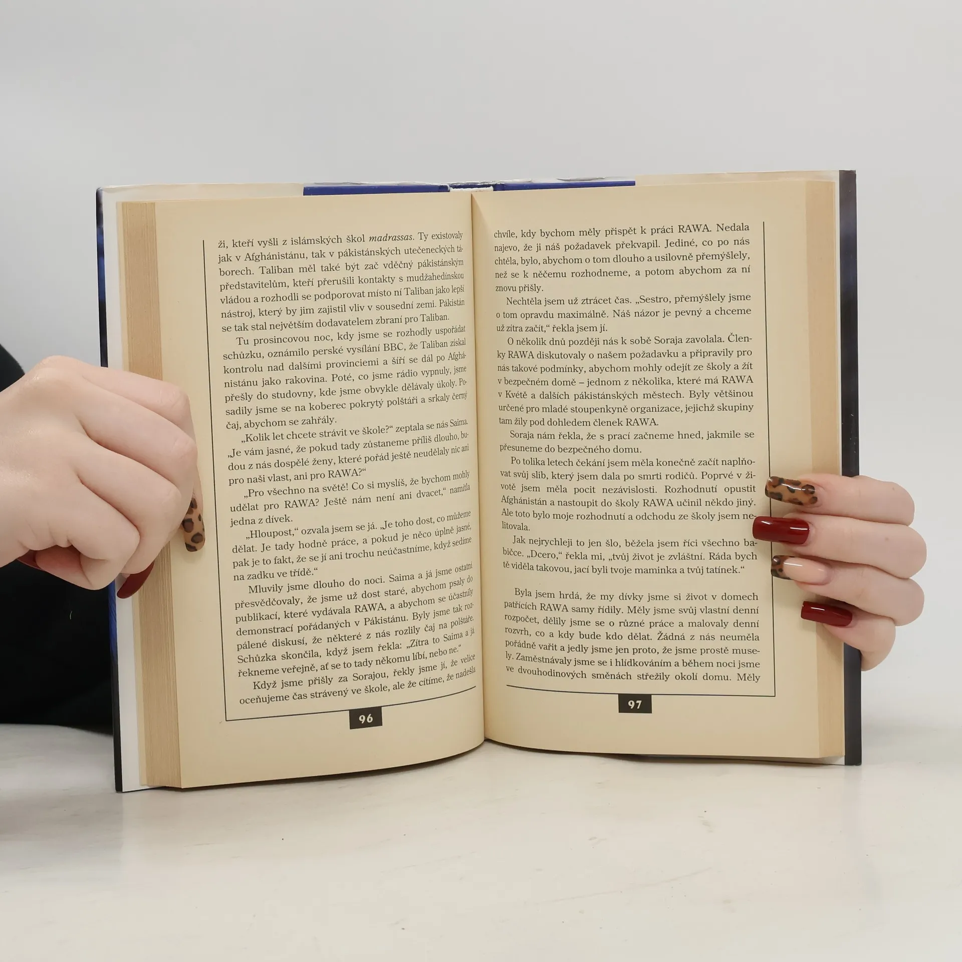 Autentický příběh třiadvacetileté Afghánky, která se aktivně zapojila do práce Revolučního sdružení afghánských žen, bojujícího proti Talibanu a jeho zákonům. Hrdinka, pocházející z rodiny kábulských intelektuálů, se po smrti rodičů v emigraci zapojila do práce Revolučního sdružení a jako jeho členka procestovala tajně zemi, aby mohla dokumentovat zločiny mudžaheddínů a Talibanu na svých spoluobčanech po odchodu ruských vojsk. V současné době působí v uprchlickém táboře v Pákistánu, kde organizuje vzdělávací kurzy pro dívky a bojuje za práva afghánských žen. Autentické vyprávění o těžce zkoušené zemi a hrůzách náboženského fanatismu je vedeno snahou upozornit světovou veřejnost na utrpení civilního obyvatelstva své země a také na beznadějné postavení současné afghánské ženy. Zajímavé a otevřené vyprávění zachycuje dobu od roku 1979-2001 a je doplněno stručným přehledem nejdůležitějších politických událostí.