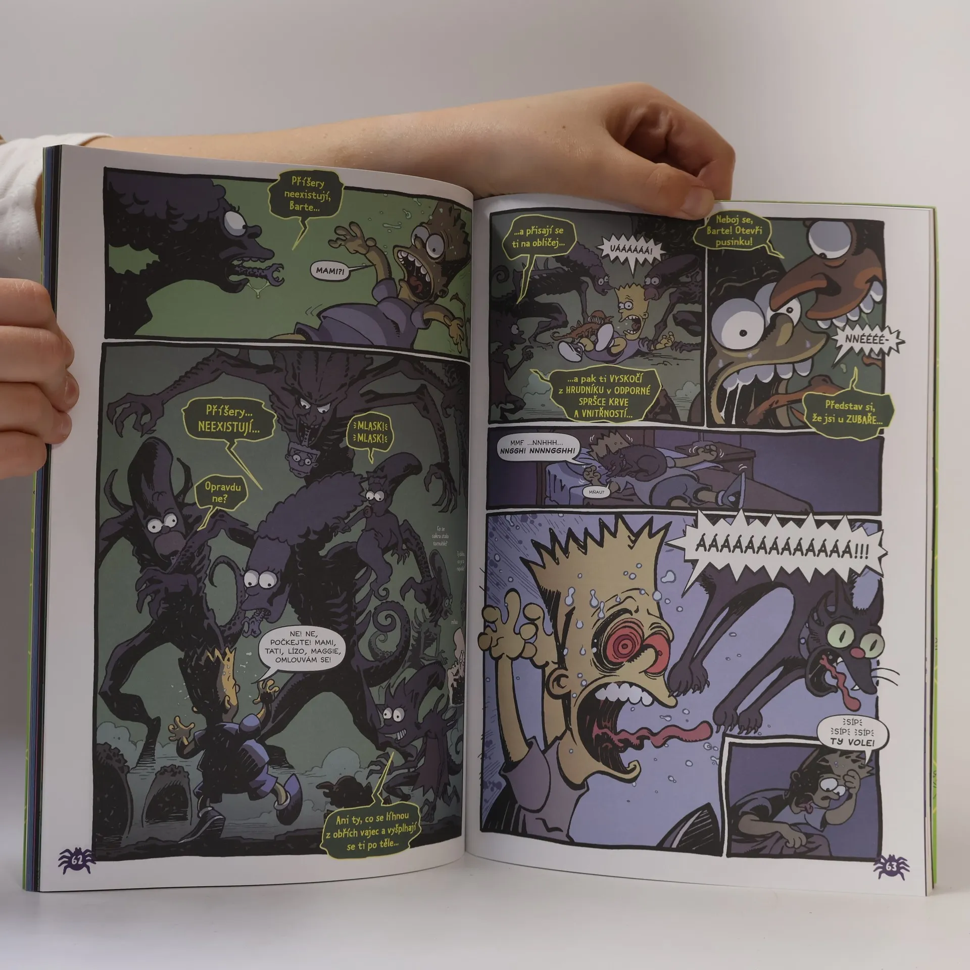 Další várka "hororových" Simpsonů, ve kterých dojde i na vetřelce, příšeru v ledu, Lisu v zemi Oz, opravdu pekelný halloween, děsivé androidy a jiná monstra. A to všechno v podání komiksových legend jako je Garth Ennis, Stan Sakai, Scott Morse, John McCrea, případně Mark "Luke Skywalker" Hamill a Jim Mahfood.