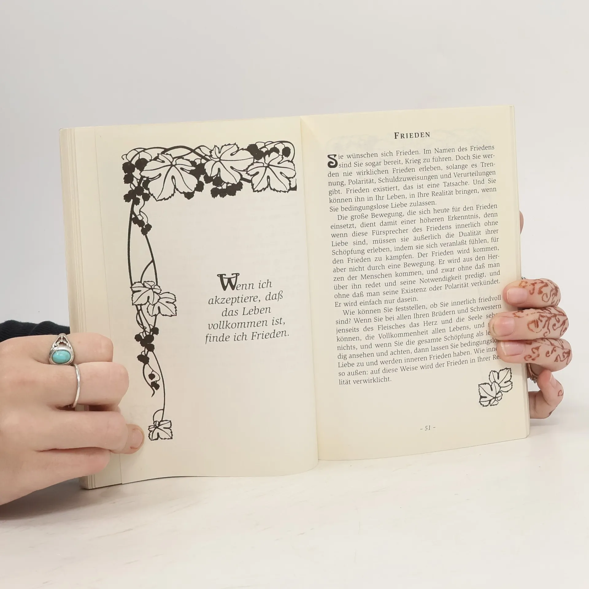 Neue Meditationen und Affirmationen 'In Deiner eigenen Göttlichkeit liegt große Macht, aber nicht in der Herrschaft über andere, sondern im Begreifen, wer Du eigentlich bist. Und in der Entdeckung dieser Wahrheit liegt eine göttliche Selbstbescheidenheit, aus der Liebe und Mitgefühl entstehen. Denn der Weizen steht stolz und hoch, wenn er noch unreif ist, aber die vollen Ähren beugen sich in ihrer Reife liebevoll der Erde zu.'