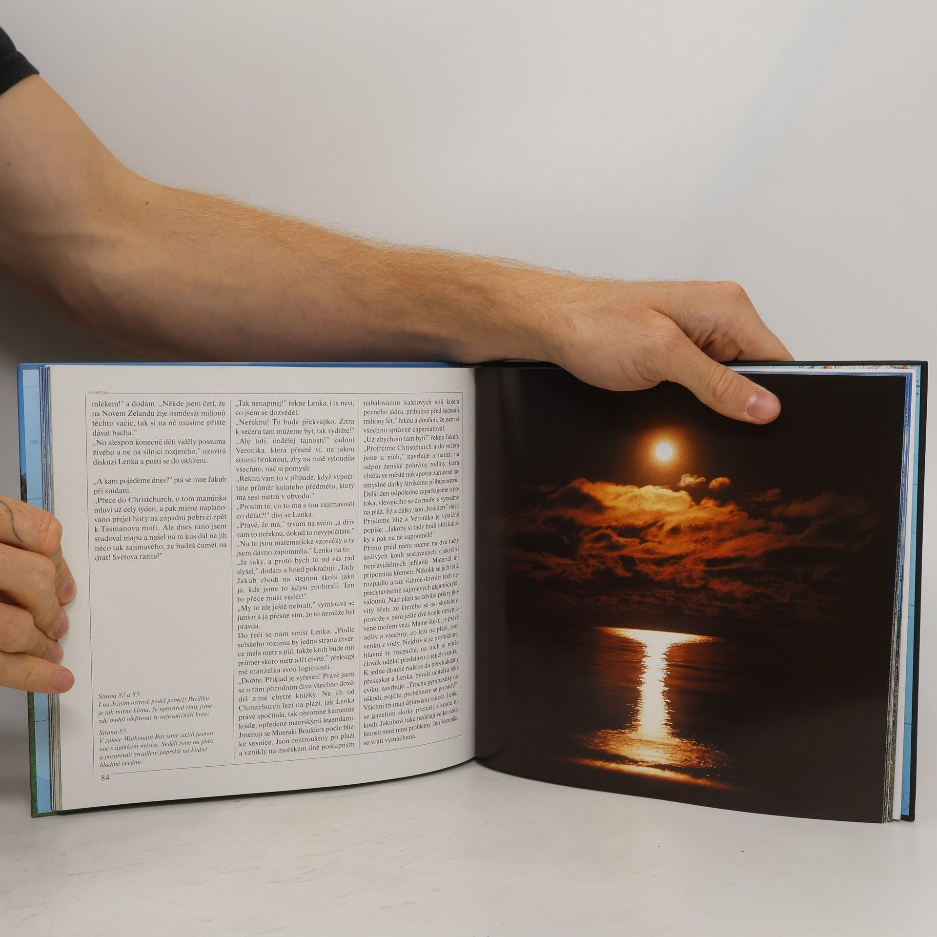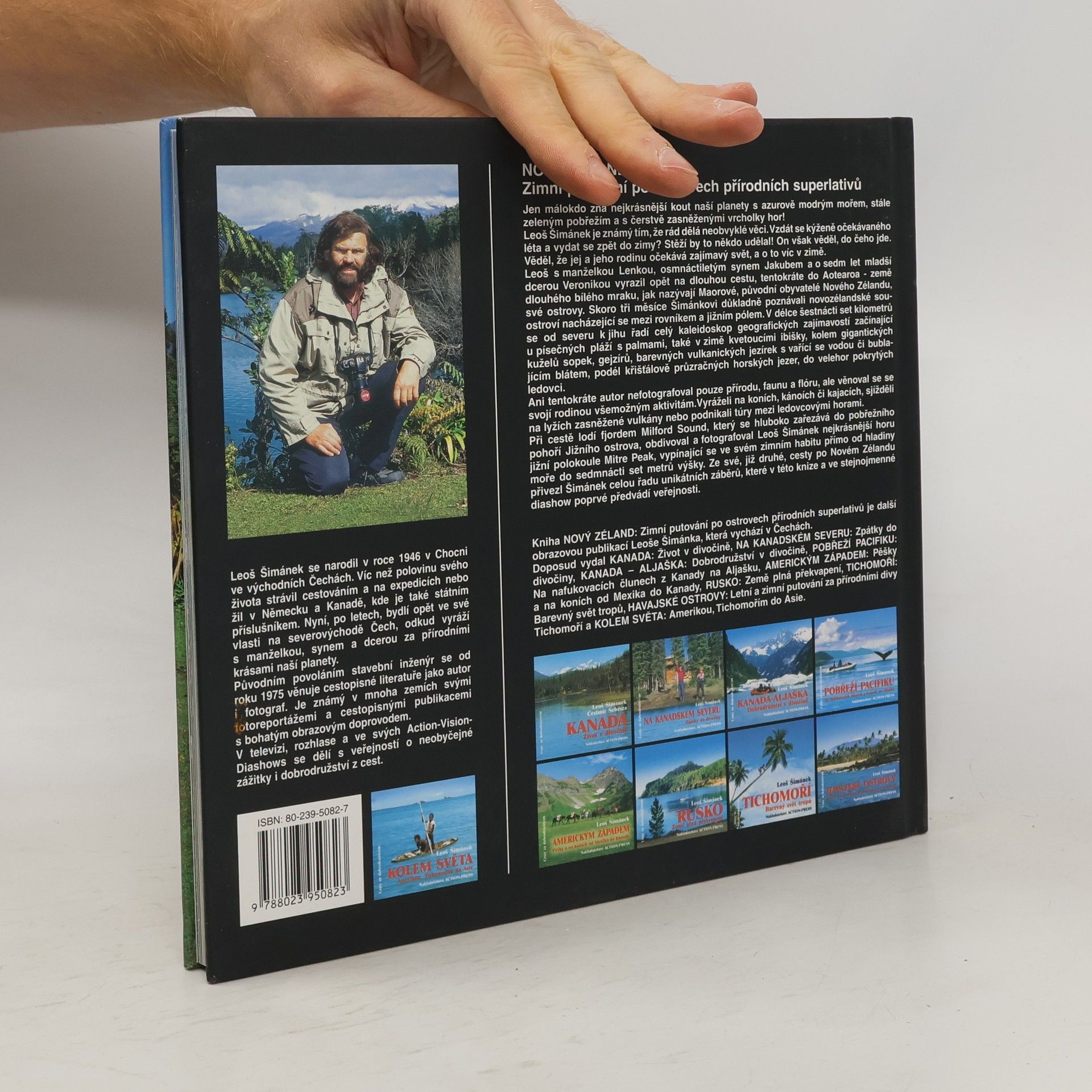 Podtitul: Zimní putování po ostrovech přírodních superlativů. Jen málokdo zná nejkrásnější kout naší planety se sytě modrým mořem, stále zeleným pobřežím a s čerstvě zasněženými vrcholky hor! Leoš Šimánek je známý tím, že rád dělá neobvyklé věci. Vzdát se kýženě očekávaného léta a vydat se zpět do zimy? Stěží by to někdo udělal! On však věděl, do čeho jde. Věděl, že jej a jeho rodinu očekává zajímavý svět, a o to víc v zimě. Leoš s manželkou Lenkou, osmnáctiletým synem Jakubem a o sedm let mladší dcerou Veronikou vyrazil opět na dlouhou cestu, tentokráte do Aotearoa – země dlouhého bílého mraku, jak nazývají Maorové, původní obyvatelé Nového Zélandu, své ostrovy. Skoro tři měsíce důkladně poznávali Šimánkovi novozélandské souostroví nacházející se mezi rovníkem a jižním pólem. V délce šestnácti set kilometrů se od severu k jihu řadí celý kaleidoskop geografických zajímavostí začínající u písečných pláží s palmami, také v zimě kvetoucími ibišky, kolem gigantických kuželů sopek, gejzírů, barevných vulkanických jezírek s vařící se vodou či bublajícím blátem, podél blankytně modrých horských jezer, do velehor pokrytých ledovci. Ani tentokráte autor nefotografoval pouze přírodu, faunu a flóru, ale věnoval se svojí rodinou všemožným aktivitám. Vyráželi na koních, kánoích či kajacích, sjížděli na lyžích zasněžené vulkány nebo podnikali túry mezi ledovcovými velehorami.