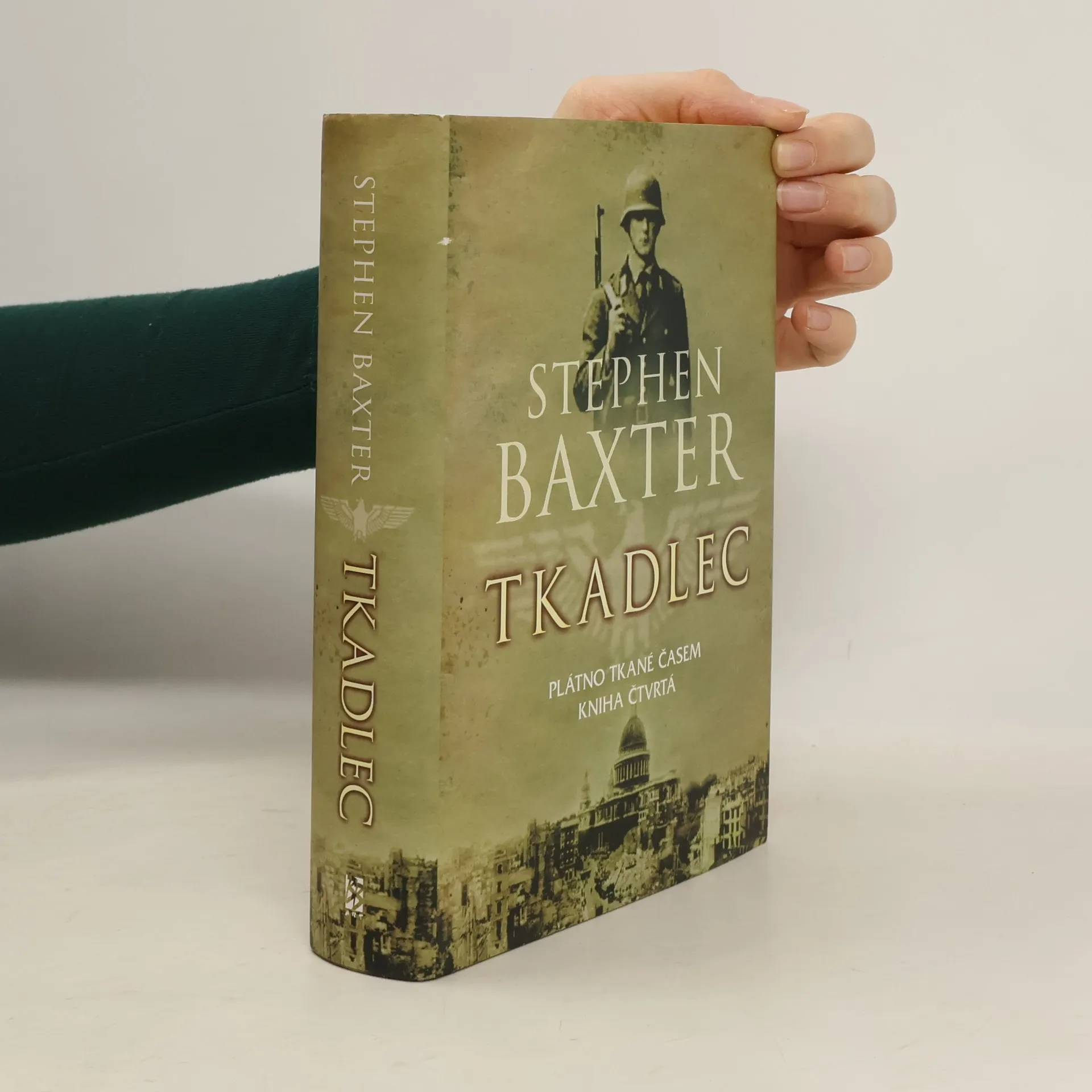 Plátno tkané časem. Kniha čtvrtá. Luftwaffe nemilosrdně ničí RAF a k plážím Sussexu i Kentu dorazily německé invazní čluny. Británie se probouzí do hrůzné reality – jih Anglie obsazuje wermacht. Na ostrově zuří zoufalá bitva, která má zastavit německé invazní jednotky. Několik jedinců se v nastalé panice a chaosu snaží zjistit, co se vlastně stalo – je to vyvrcholení nějakého plánu, který se chystal celá staletí, nějakého záhadného spiknutí, jež má navždy změnit historii? Stephen Baxter nás v románu Tkadlec, posledním dílu své tetralogie, zavádí do Británie za druhé světové války. Něco je ale jinak, než mělo být. Němci se vyloďují v Anglii a Britské ostrovy zažívají téměř devět set let po Vilému Dobyvateli další invazi. Tkadlec už není historickým románem, ale kontrafaktuální historií, je to příběh o tom, co se mohlo stát, kdyby…