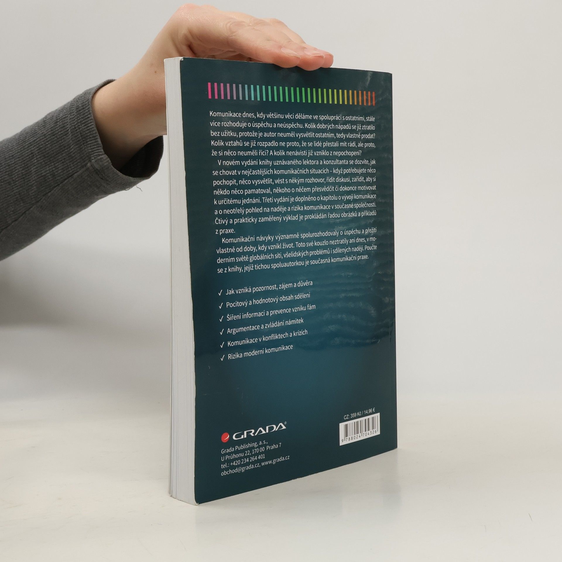 V novém 3. vydáním knihy se dozvíte, jak se chovat v nejčastějších komunikačních situacích – když potřebujete něco pochopit, vysvětlit, vést s někým rozhovor, řídit diskusi, někoho o něčem přesvědčit či dokonce motivovat k určitému jednání. Vydání je doplněno o kapitolu o vývoji komunikace.
