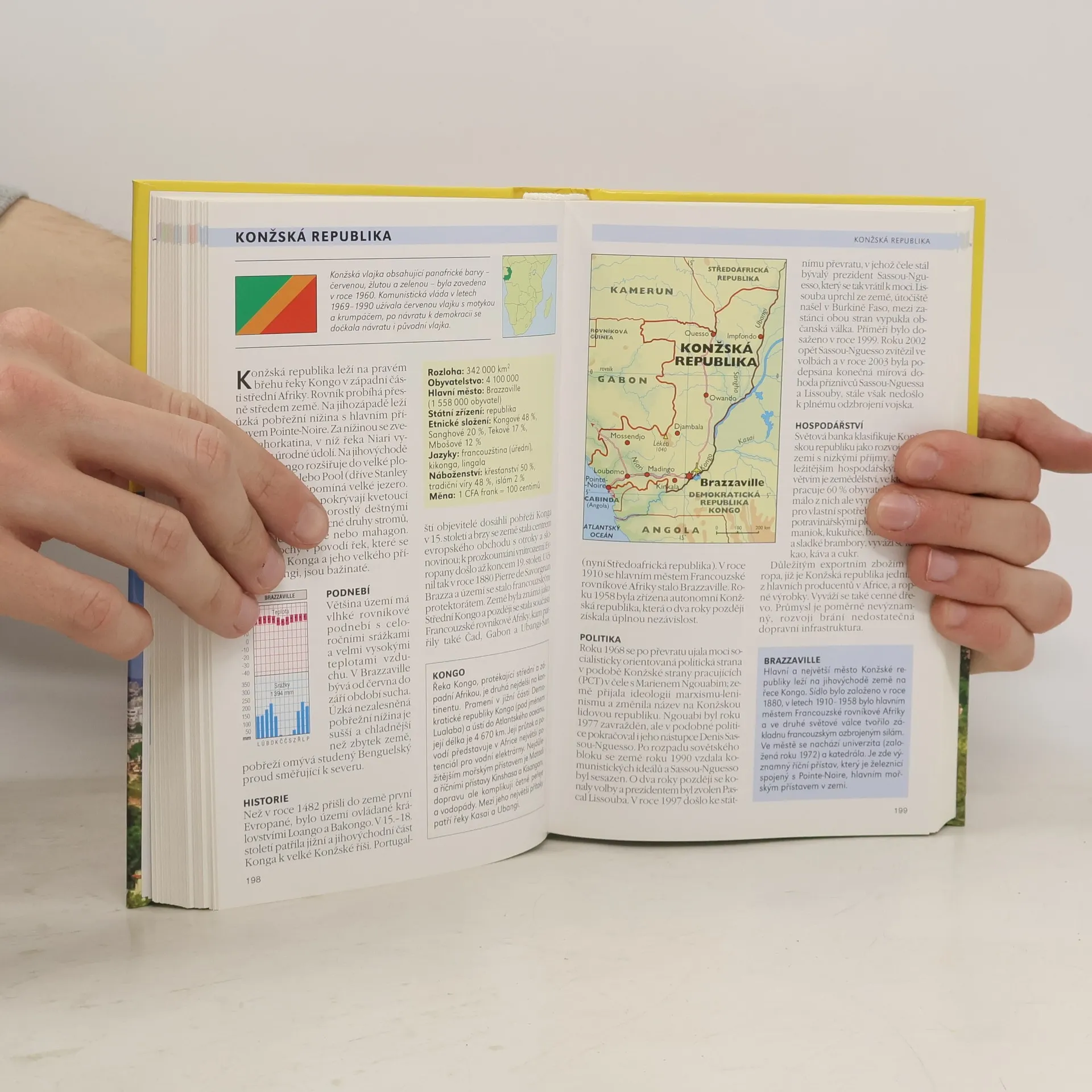 Základní informace o každé zemi: rozloha, hlavní město, počet obyvatel, státní zřízení, etnické složení, místní jazyky, náboženství a měna. Charakteristika přírodních podmínek jednotlivých států doplněná klimatickým grafem. Stručné dějiny, současná politická a ekonomická situace. Orientační mapy zobrazující polohu státu na zeměkouli. Politické mapy s vyznačením sousedních zemí, hlavních a větších měst, významných komunikací, řek a vodních ploch. Národní vlajky doplněné popisem jejich původu, významu barev či symbolů.