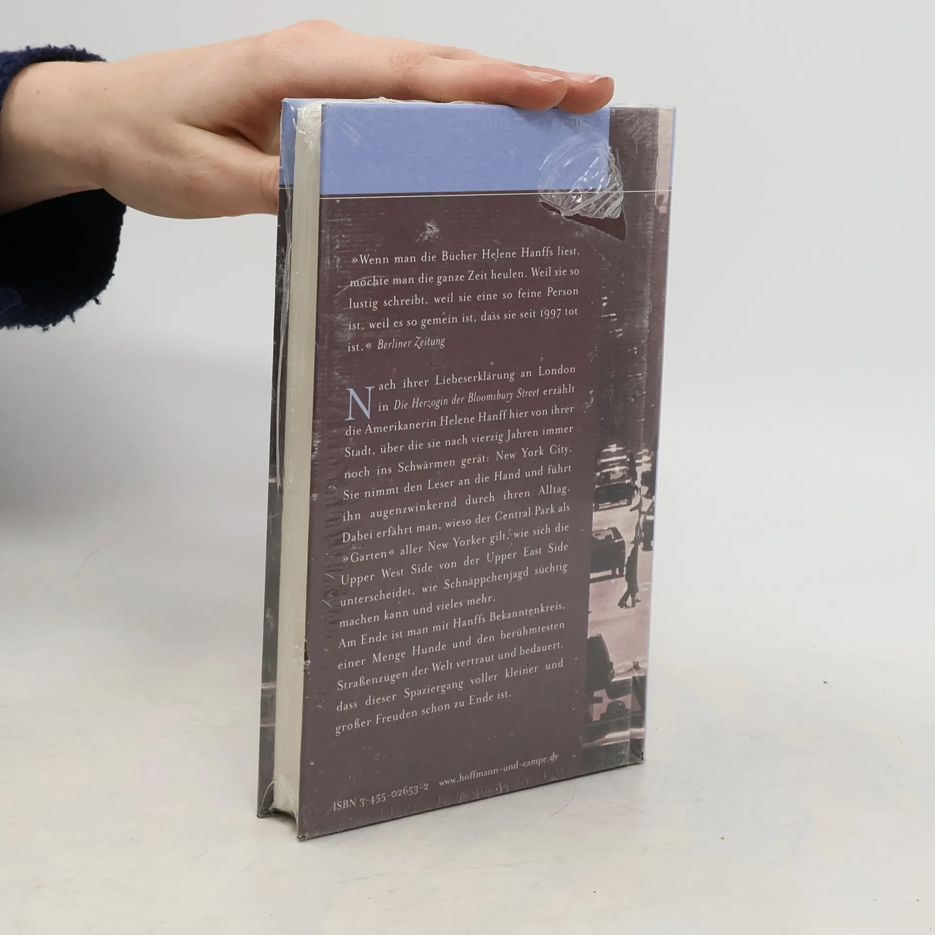 „Wenn man die Bücher Helene Hanffs liest, möchte man die ganze Zeit heulen. Weil sie so lustig schreibt, weil sie eine so feine Person ist, weil es so gemein ist, dass sie seit 1997 tot ist.“ Berliner Zeitung. Die beliebte Autorin lebt seit vier Jahrzehnten in New York, als sie für eine BBC-Radiosendung Geschichten aus ihrer Stadt erzählt. Ihre Begeisterungsfähigkeit ist dabei unverkennbar. Mit Leib und Seele New Yorker erzählt sie in ihrer einzigartigen Art von ihrem Leben, ihrem Freundeskreis und der Stadt selbst. Ursprünglich für sechs Monate geplant, werden die Beiträge zu einem sechsjährigen Projekt und schließlich zu einem Buch. Sie erklärt, warum der Central Park als „Garten“ aller New Yorker gilt, die Unterschiede zwischen Upper West Side und Upper East Side und die Ursprünge der zahlreichen Paraden auf den Straßen. Zudem erfahren wir, wie Arlene, die Hunde eigentlich nicht mag, Freundschaft mit dem Bobtail Bentley schließt, was auf Ninas Dachgarten blüht und wie die Autorin rechtzeitig einen Brautjungfern-Hosenanzug im New Yorker Modedschungel findet. Helene Hanffs Alltag ist ein Geschenk, das uns die kleinen, aber bedeutenden Details des Lebens näherbringt.