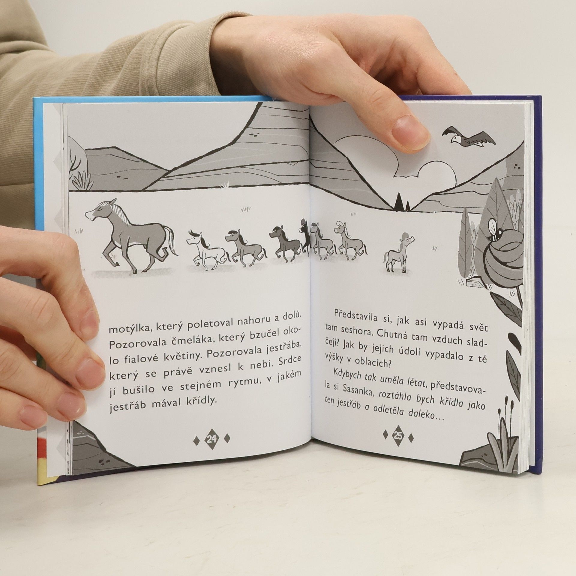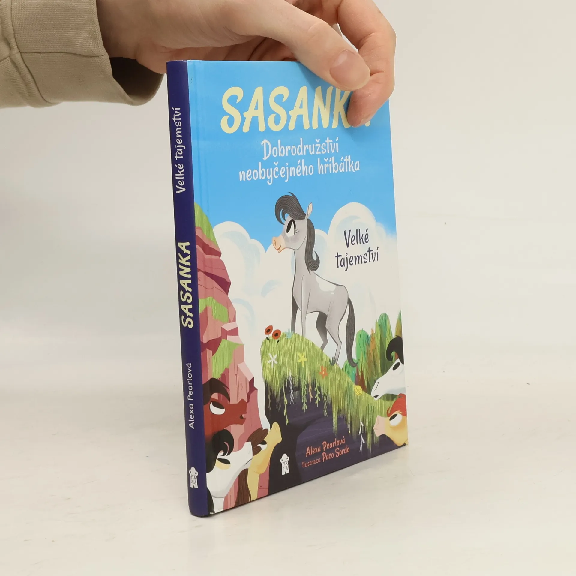 Seznamte se se Sasankou. Hříbátkem se zvláštní bílou skvrnou na hřbetě. Sasanka však není jen tak obyčejná klisnička. Cítí, že je úplně jiná, než ostatní koníci z jejího stáda. Jen pořád nemůže přijít na to, čím to je. Když ostatní chodí pěkně v řadě za sebou, Sasanka chce běžet a běžet, co nejrychleji může. Nejraději by létala v oblacích. Co by to však bylo za koně, aby se proháněl někde mezi mraky? Sasanka již brzy přijde na to, že být zvláštní vlastně nemusí být vůbec špatné. Přidejte se k Sasance a rozlouskněte spolu s ní velké tajemství.