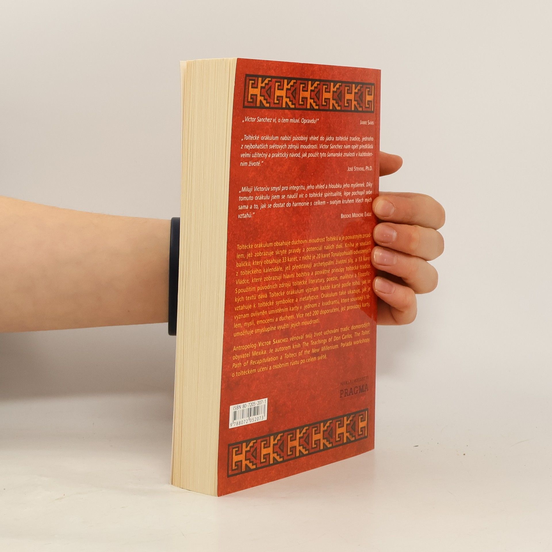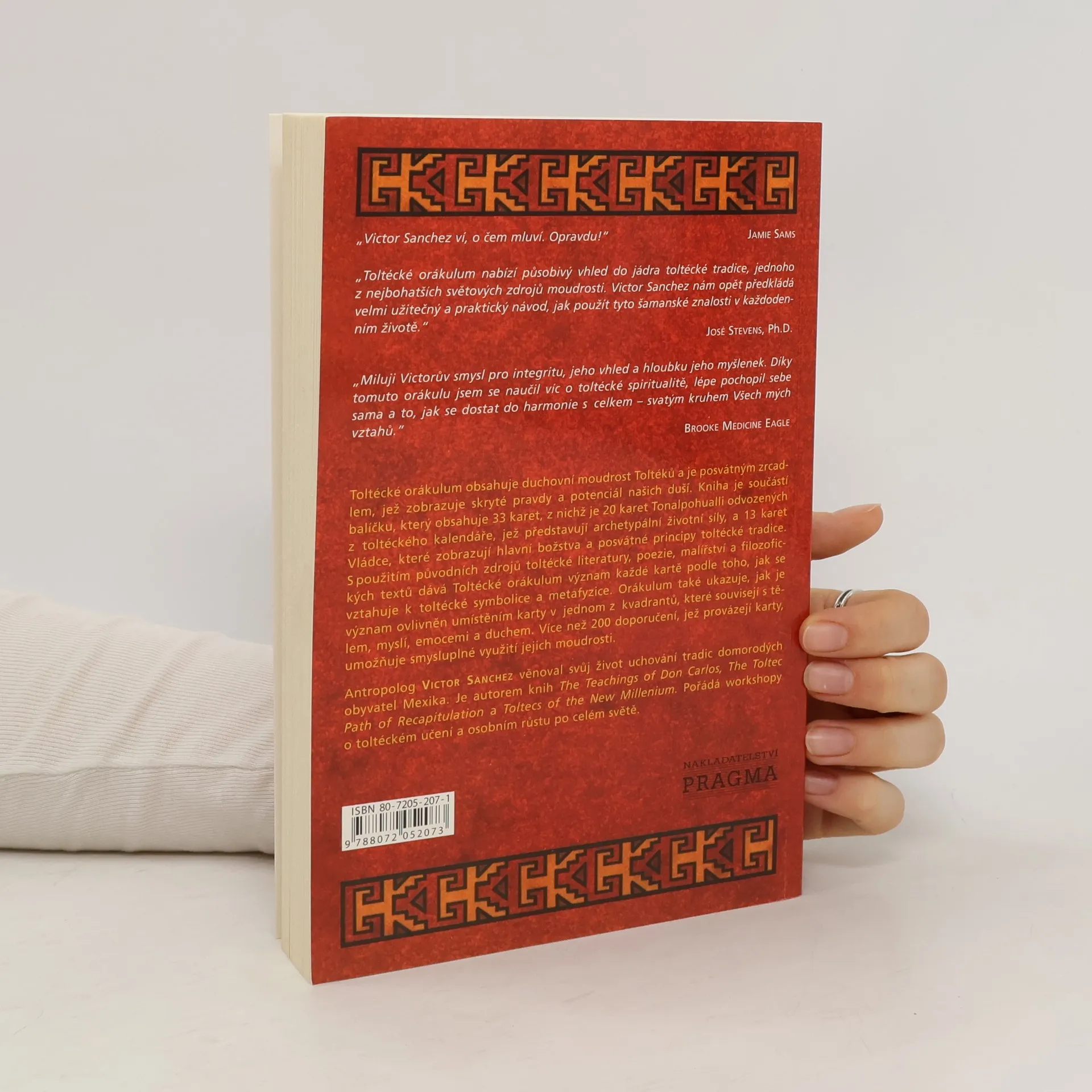 Toltécké Orákulum nabízí působivý vhled do jádra toltécké tradice, jednoho z nejbohatších světových zdrojů moudrosti. Victor Sanchez nám opět předkládá velmi užitečný a praktický návod, jak použít tyto šamanské znalosti v každodenním životě. Toltécké orákulum obsahuje duchovní moudrost Toltéků a je posvátným zrcadlem, jež zobrazuje skryté pravdy a potenciál našich duší. Kniha je součástí balíčku, který obsahuje 33 karet, z nichž je 20 karet Tonalpohualli odvozených z toltéckého kalendáře, jež představují archetypální životní síly, a 13 karet Vládce, které zobrazují hlavní božstva a posvátné principy toltécké tradice.