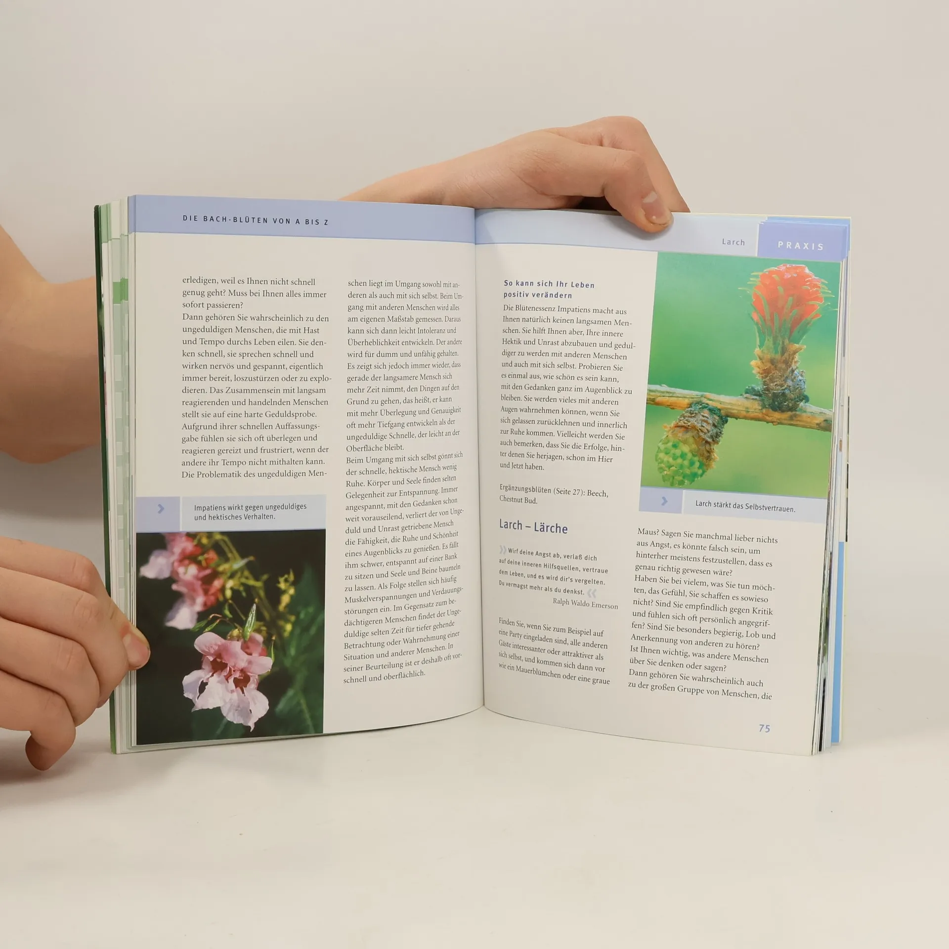 Die 38 Blütenessenzen helfen bei seelischen Tiefs, Erschöpfung, Problemen in Familie und Partnerschaft, Unsicherheit und Ängsten. Mithilfe der Selbstbefragung erfährt der Leser mehr über sich selbst und seinen momentanen Gemütszustand und lernt, welche Blütenessenzen unterstützen und helfen können.