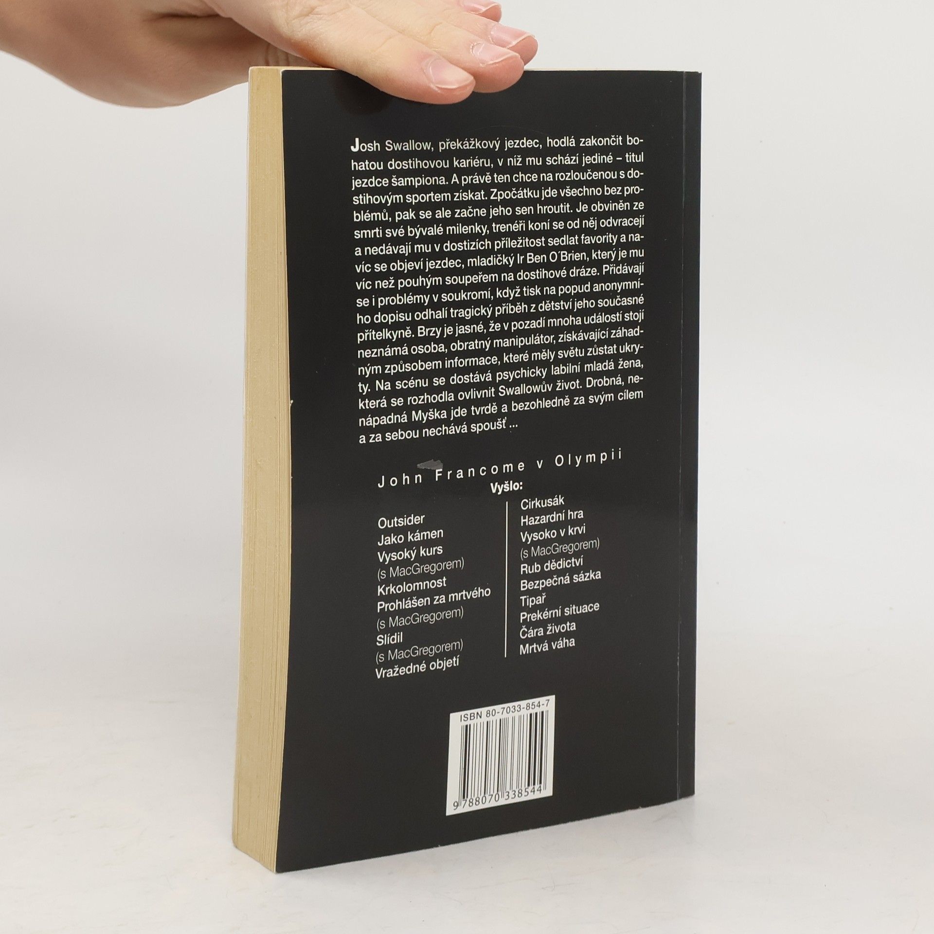 Dobrý žokej ví, kdy je čas skončit a Josh Swallow se chystá odejít ve velkém stylu. Získal již všechny možné ceny, chybí mu však ta nejdůležitější – titul žokeje – šampiona. Jenže něco si umínit a pak to uskutečnit jsou dvě rozdílné věci. A ne všichni si přejí, aby Josh uspěl. Jako například Leo Lovall, Joshův soupeř v lásce. A je tu ještě někdo, kdo se o Joshe zajímá! Tajuplná fanynka, která ho zpovzdálí sleduje a o níž Josh nemá tušení. Zatím. Do hry vstupuje její zvláštní posedlost, která nikdy nebude uspokojena – dokonce ani vraždou.
