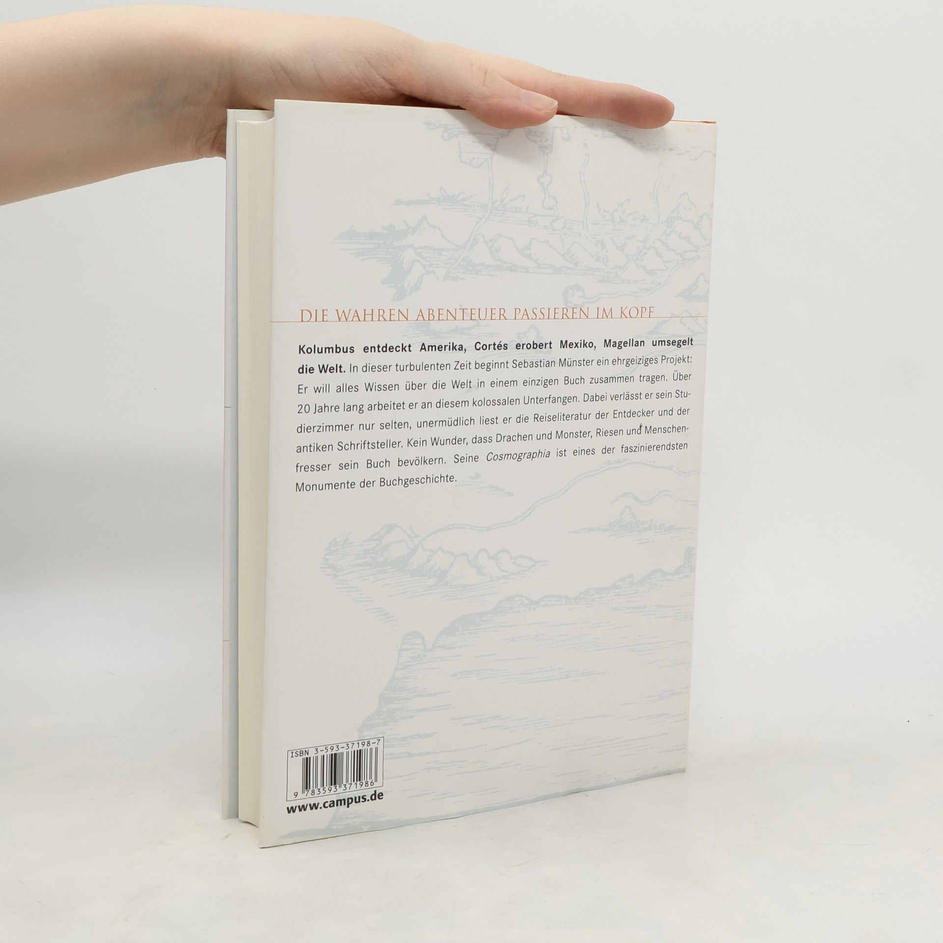 Die Entdeckung Amerikas, Keplers Revolution, Reformation, Bauernkriege - in dieser turbulenten Zeit will der Gelehrte Sebastian Münster alles Wissen über die Welt in einem einzigen Buch ordnen. Ein kolossales Unterfangen, an dem er über 20 Jahre arbeitet. Nur selten verlässt er sein Studierzimmer in Basel. So verwundert es nicht, dass sich Fantasie und Realität vermischen: Monster, Riesen und Menschenfresser bevölkern seine Welt. Sein Buch wurde ein Bestseller und ein Juwel der Buchgeschichte.