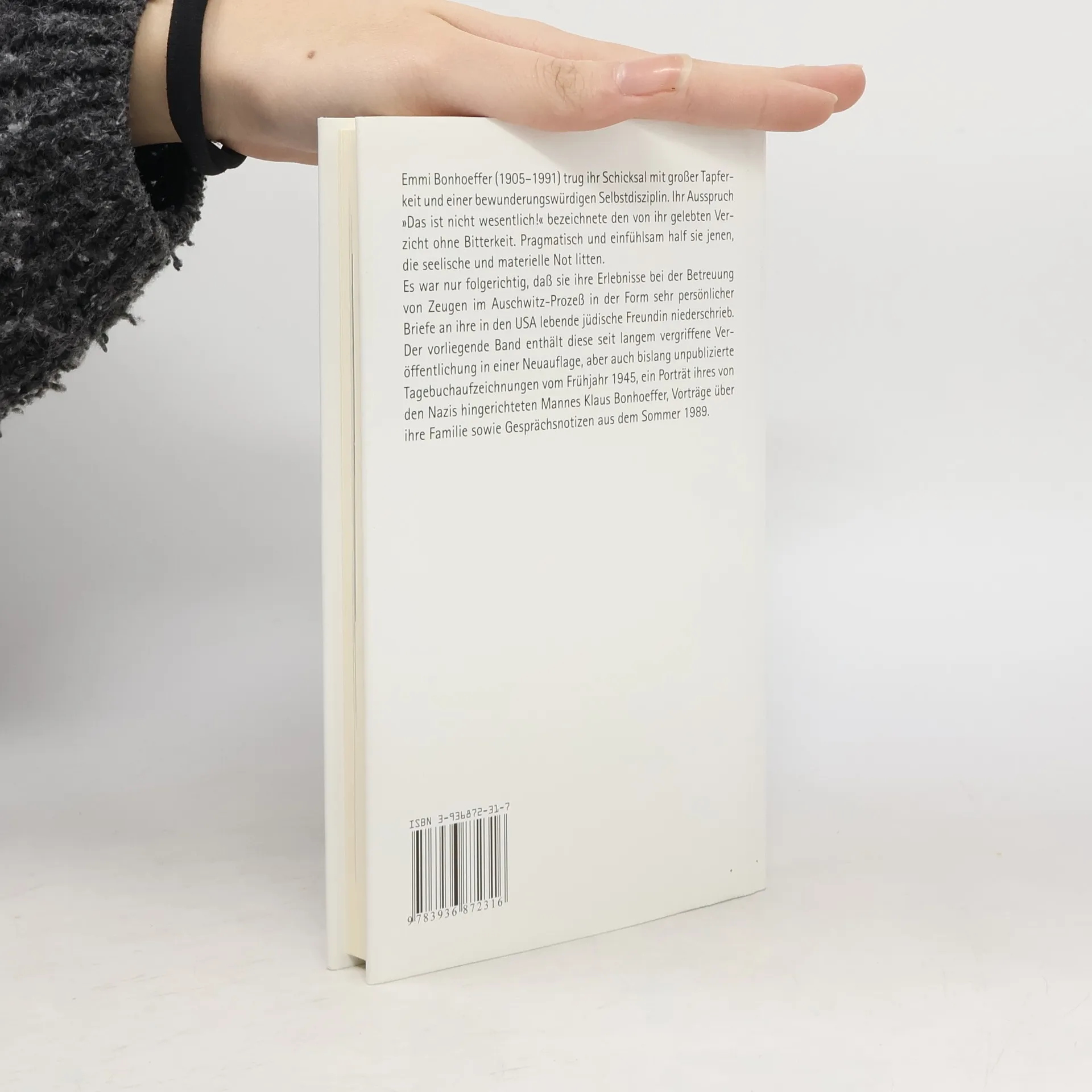 Emmi Bonhoeffer (1905–91) trug ihr Schicksal mit Tapferkeit und Selbstdisziplin. Pragmatisch und einfühlsam half sie jenen, die seelische und materielle Not litten. So war es nur folgerichtig, daß sie ihre Erlebnisse bei der Betreuung von Zeugen im Auschwitz-Prozeß in der Form sehr persönlicher Briefe an ihre in den USA lebende jüdische Freundin niederschrieb. Der vorliegende Band enthält diese seit langem vergriffene Veröffentlichung in einer Neuauflage, ebenso bislang unpublizierte Tagebuchaufzeichnungen vom Frühjahr 1945, ein Porträt ihres von den Nazis hingerichteten Mannes Klaus Bonhoeffer, Vorträge über ihre Familie und Gesprächsnotizen aus dem Sommer 1989 in Potsdam. 'Eine ganz bemerkenswerte, preußische Frau, die alle preußischen Tugenden in sich vereint.' (Günther Jauch als Gast in Elke Heidenreichs Sendung 'ZDF Lesen' vom 12. April 2005) 'Bewegende Zeugnisse aus dem Leben und Wirken einer Frau, die den Widerstandskampf ihres Mannes gegen das Hitler-Regime auf ihre Weise unterstützte und nach dem Krieg zu einer aktiven Streiterin wider das Vergessen wurde. Ein wichtiges Buch, das eine Heldin aus dem Schatten ihres Mannes hervorholt.' (Empfehlung der Stiftung Lesen)