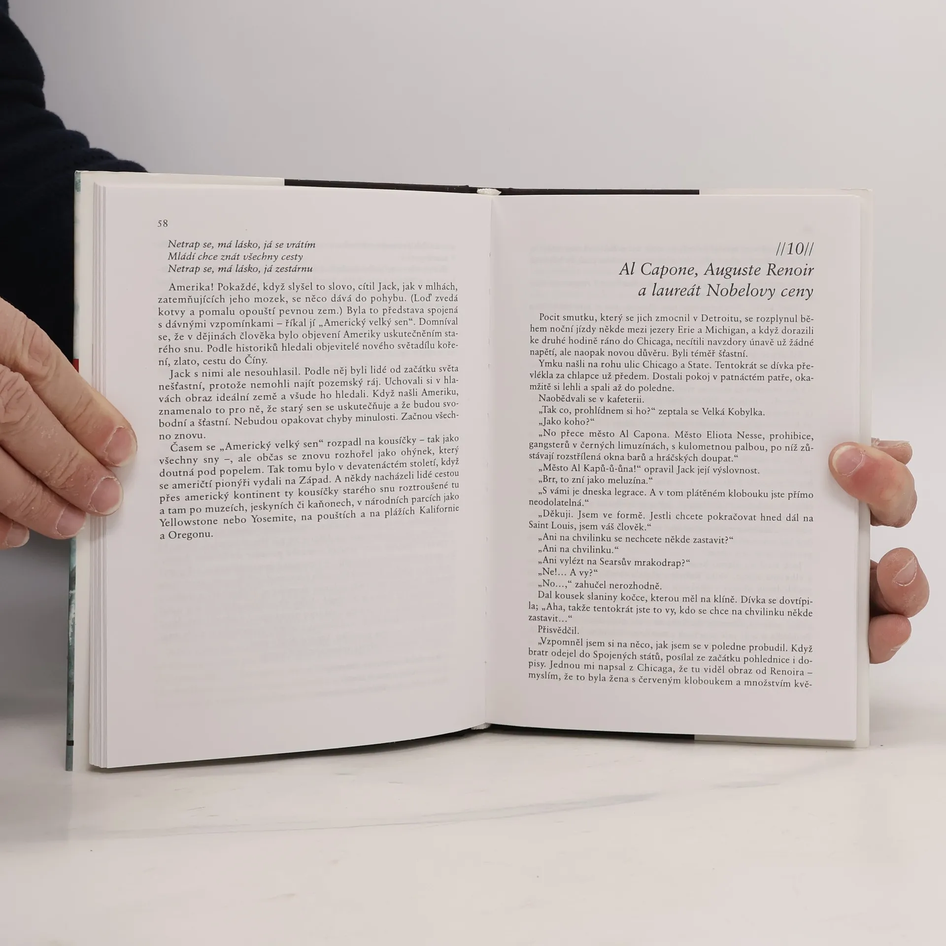 Jack Waterman, hlavní postava knihy, je hubený čtyřicátník v sepraných džínách a vlněném svetru, který se živí jako spisovatel neúspěšných románů. Má bratra Thea, jež po vzoru Kerouaca putuje po USA a občas o sobě nechá vědět prostřednictvím pohledu, zaslaného tu z Východního pobřeží, tu ze Západu USA. Pak ovšem zprávy přestanou přicházet. Jack nejdřív na bratra nemyslí, ale krátce po svých narozeninách si najednou sbalí věci, dá do pořádku minibus Volkswagen, vezme poslední (nyní už sotva čitelnou) pohlednici se záhadným textem od bratra a vydává se na nejistou cestu, aby bratra našel. Jednoho dne si Jacka stopne dívka, napůl Indiánka vyučená automechanikem, Velká Luční Kobylka, s černou kočičkou v kapuci.Od této chvíle putují společně, nejdřív přes část Kanady a pak i přes celé Spojené státy, po uzounké červené nitce Theových stop, které, jak se ukazuje, ještě čas ani vítr nezavál do koutů zapomění.