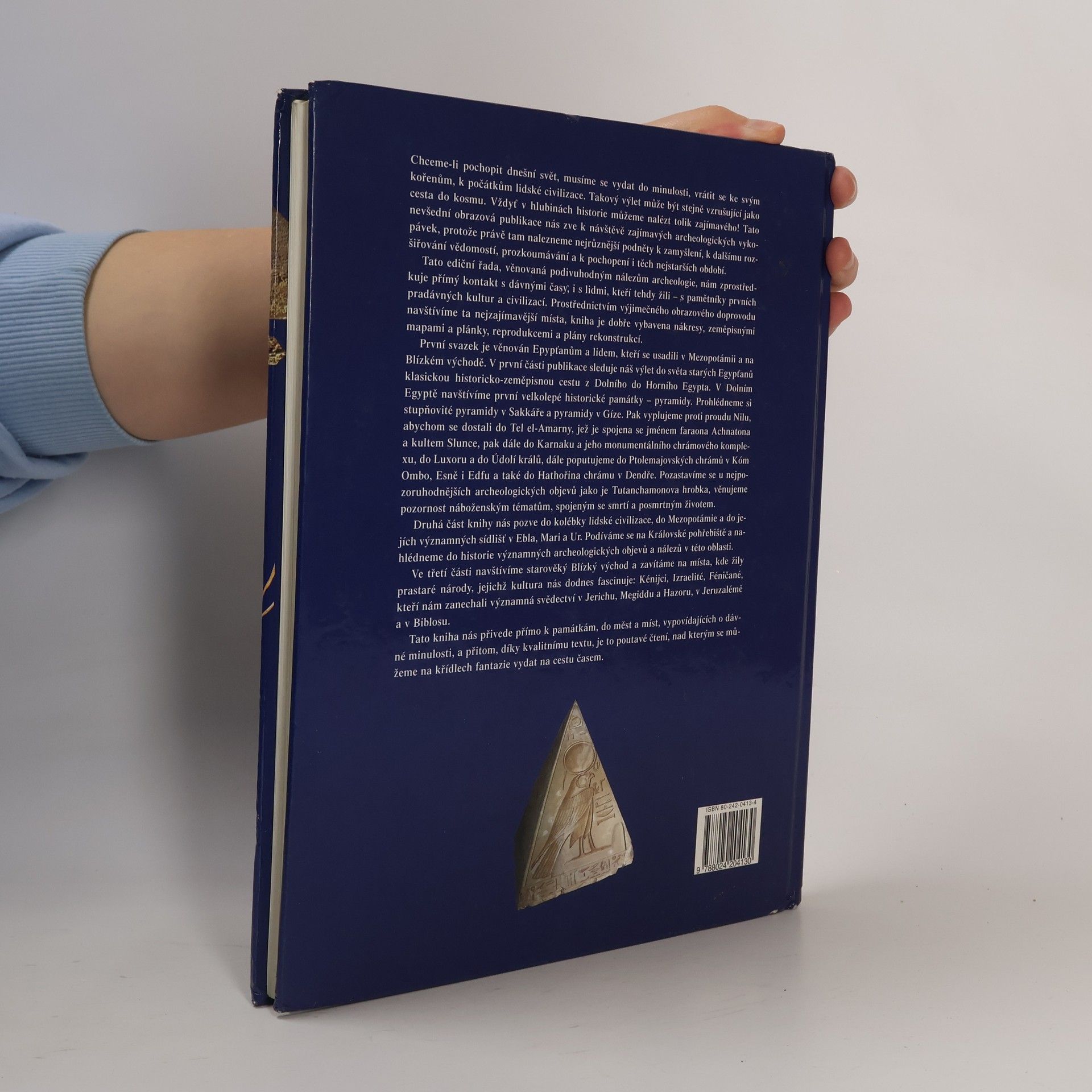 Výpravná obrazová publikace přibližuje významné archeologické památky nejstarších lidských civilizací Egypta, Mezopotámie a Blízkého východu. Publikaci prostřednictvím velmi pěkných barevných fotografií archeologických nálezů, různých kreseb, nákresů i plánků vypovídá o dávné minulosti lidstva. Dozvíme se mnoho zajímavého z historie významných archeologických objevů i o osobnostech kousek po kousku odkrývajících jedinečné památky starověkých civilizací. První, podstatná část knihy je věnovaná památkám Dolního a Horního Egypta - pyramidy, Údolí králů, Tutanchamonova hrobka atd. V další části budeme sledovat archeologické objevy a nálezy v Mezopotámii - Sumerové, Asyřané, Ninive, Babylonie a v oblastech starověkého Blízkého východu - Kananejci, Foiničané, Kumránské svitky atd.