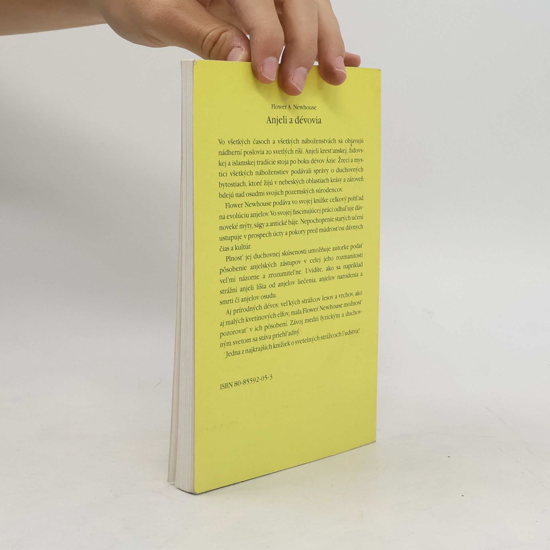 Vo všetkých časoch a všetkých náboženstvách sa objavujú nádherní poslovia zo svetlých ríší. Anjeli kresťanskej, židovskej a islamskej tradície stoja po boku dévov Ázie. Žreci a mystici všetkých náboženstiev podávali správy o duchovných bytostiach, ktoré žijú v nebeských oblastiach krásy a zároveň bdejú nad osudmi svojich pozemských súrodencov. Flower Newhouse podáva vo svojej knižke celkový pohľad na evolúciu anjelov. Vo svojej fascinujúcej práci odhaľuje dávnoveké mýty, ságy a antické báje. Nepochopenie starých učení ustupuje v prospech úcty a pokory pred múdrosťou dávnych čias a kultúr. Plnosť jej duchovnej skúsenosti umožňuje autorke podať pôsobenie anjelských zástupov v celej jeho rozmanitosti veľmi názorne a zrozumiteľne. Uvidíte, ako sa napríklad strážni anjeli líšia od anjelov liečenia, anjelov narodenia a smrti či anjelov osudu. Aj prírodných dévov, veľkých strážcov lesov a vrchov, ako aj malých kvetinových elfov, mala Flower Newhouse možnosť pozorovať v ich pôsobení. Závoj medzi fyzickým a duchovným svetom sa stáva priehľadný. Jedna z najkrajších knižiek o svetelných strážcoch ľudstva! Vydanie prvé