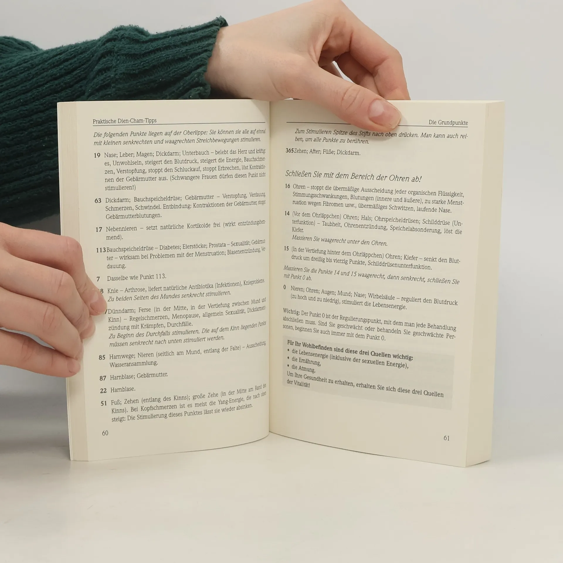 Die Dien-Cham-Methode verbindet die wohltuenden Wirkungen von Akupunktur und Reflexzonenmassage. Es können damit unterschiedlichste Beschwerden und Krankheiten behandelt werden – ohne Medikamente und einfach an jedem Ort. Einzige Nebenwirkungen: Entspannung und ein strahlendes Aussehen.