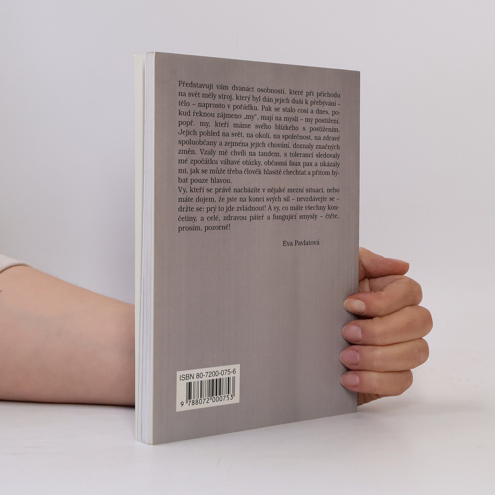 Novinářka Eva Pavlatová zpovídá známé i neznámé osobnosti, do jejichž života tvrdě zasáhl osud a musejí se vyrovnávat se zdravotním postižením. Kromě Jana Potměšila, herce, který pokračuje ve své profesi i na invalidním vozíku, je tu i mnoho méně známých lidí s o to zajímavějšími osudy.