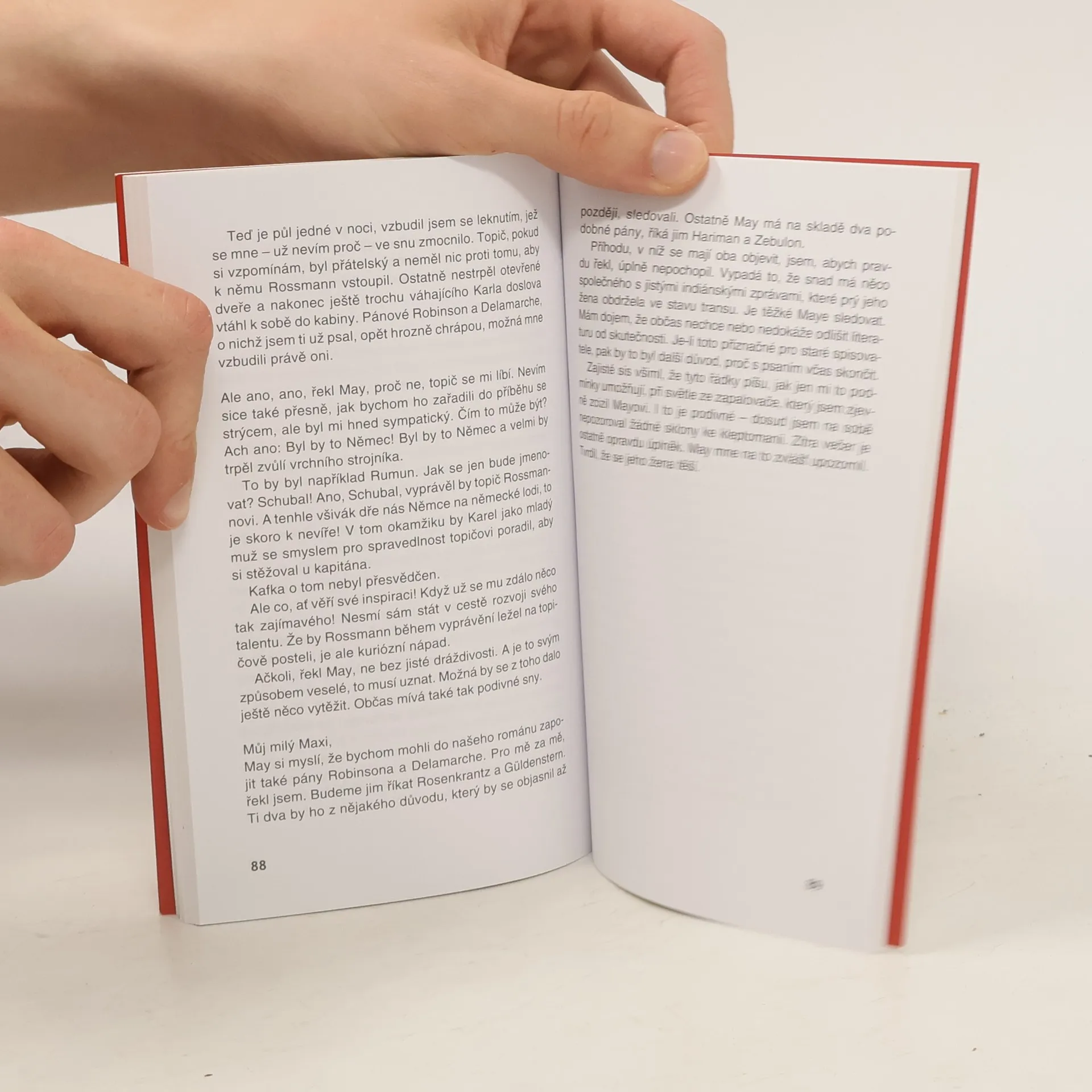 O kovbojku z Divokého západu opravdu nejde. Ne, ale Nový svět slibující nové možnosti hraje v knize Petera Henische důležitou roli. Charakter románu vystihuje jeho podtitul, který čtenáři nastiňuje také základní obrysy děje- Jak Franz Kafka na lodi Karla Maye potkal, ale na americkou půdu přesto nevkročil. Jemný humor, lehká ironie, fakta, historie, sny a fikce, to vše provází jedno setkání, ke kterému nikdy nedošlo. Píše se rok 1908 a Franz Kafka, který se místo na služební cestu po Čechách dostal spíše náhodou než s úmyslem na zaoceánský parník, se tu setkává s Karlem Mayem a jeho výrazně mladší ženou Klárou. Všichni tři plují směrem k Americe a tráví spolu nejednu chvilku. May si tak krátí čas a zároveň se poddává určitým neopsatelným pocitům náklonnosti, Kafka, který si s pozorností Mayových neví rady, je ale rád, že se tak alespoň dostane z nepřívětivého a tísnivého mezipalubí