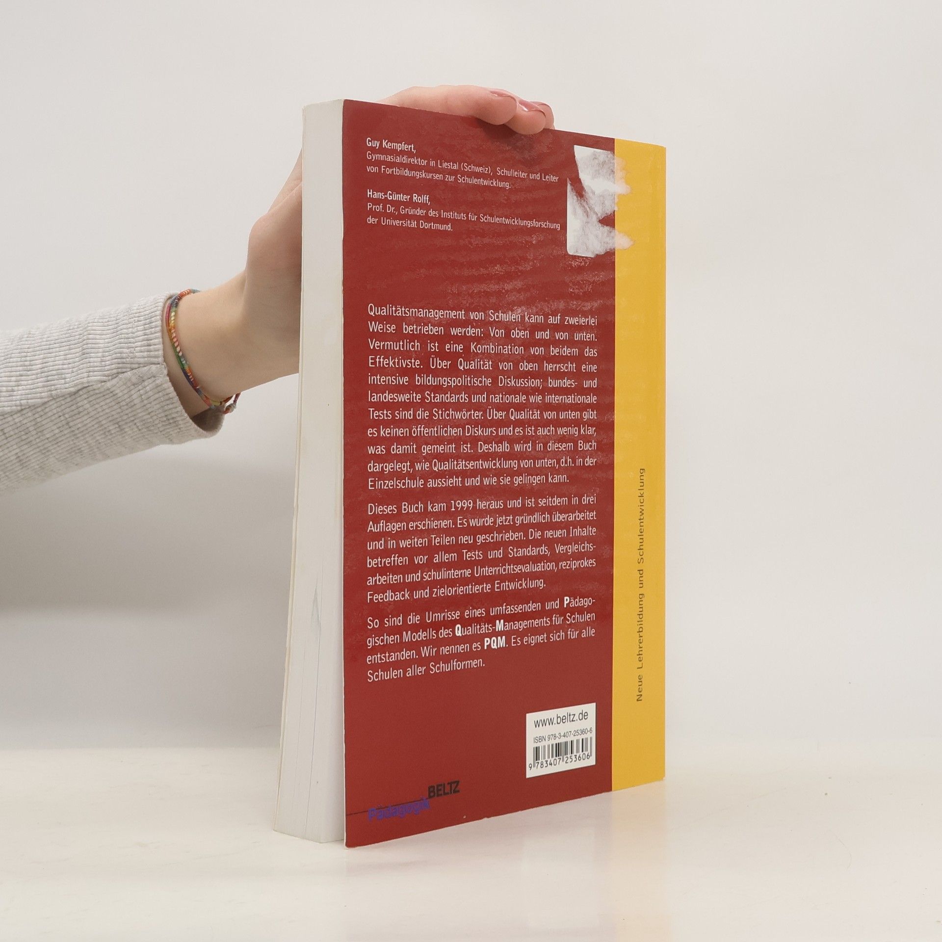 Qualitätsmanagement ist für die nächsten Jahre ein bedeutsames Thema, vielleicht sogar das bedeutsamste überhaupt. Qualitätsmanagement ist anspruchsvoll. Qualitätsmanagement von Schulen kann auf zweierlei Weise betrieben werden: Von oben und von unten. Vermutlich ist eine Kombination von beidem das Effektivste. Über Qualität von oben herrscht eine intensive bildungspolitische Diskussion; bundes- und landesweite Standards und nationale wie internationale Tests sind die Stichwörter. Über Qualität von unten gibt es keinen öffentlichen Diskurs und es ist auch wenig klar, was damit gemeint ist. Deshalb wird in diesem Buch dargelegt, wie Qualitätsentwicklung von unten, d.h. in der Einzelschule aussieht und wie sie gelingen kann. Dieses Buch kam 1999 heraus und ist seitdem in drei Auflagen erschienen. Es wurde jetzt gründlich überarbeitet und in weiten Teilen neu geschrieben. Die neuen Inhalte betreffen vor allem Tests und Standards, Vergleichsarbeiten und schulinterne Unterrichtsevaluation, reziprokes Feedback und zielorientierte Entwicklung. So sind die Umrisse eines umfassenden und Pädagogischen Modells des Qualitäts-Managements für Schulen entstanden. Wir nennen es PQM. Es eignet sich für alle Schulen aller Schulformen. (Bisher erschienen unter dem Titel: Pädagogische Qualitätsentwicklung. Ein Arbeitsbuch für Schule und Unterricht.)