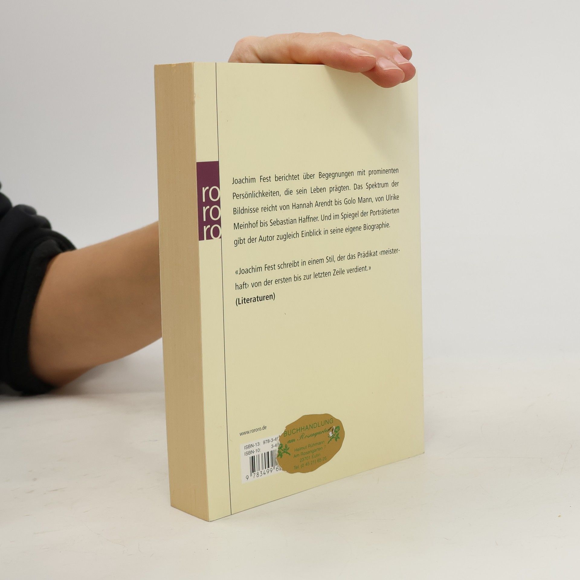 Joachim Fest berichtet über Begegnungen mit prominenten Persönlichkeiten, die sein Leben prägten. Das Spektrum der Bildnisse reicht von Hannah Arendt bis Golo Mann, von Ulrike Meinhof bis Sebastian Haffner. Und im Spiegel der Porträtierten gibt der autor zugleich einen Einblick in seine eigene Biographie.