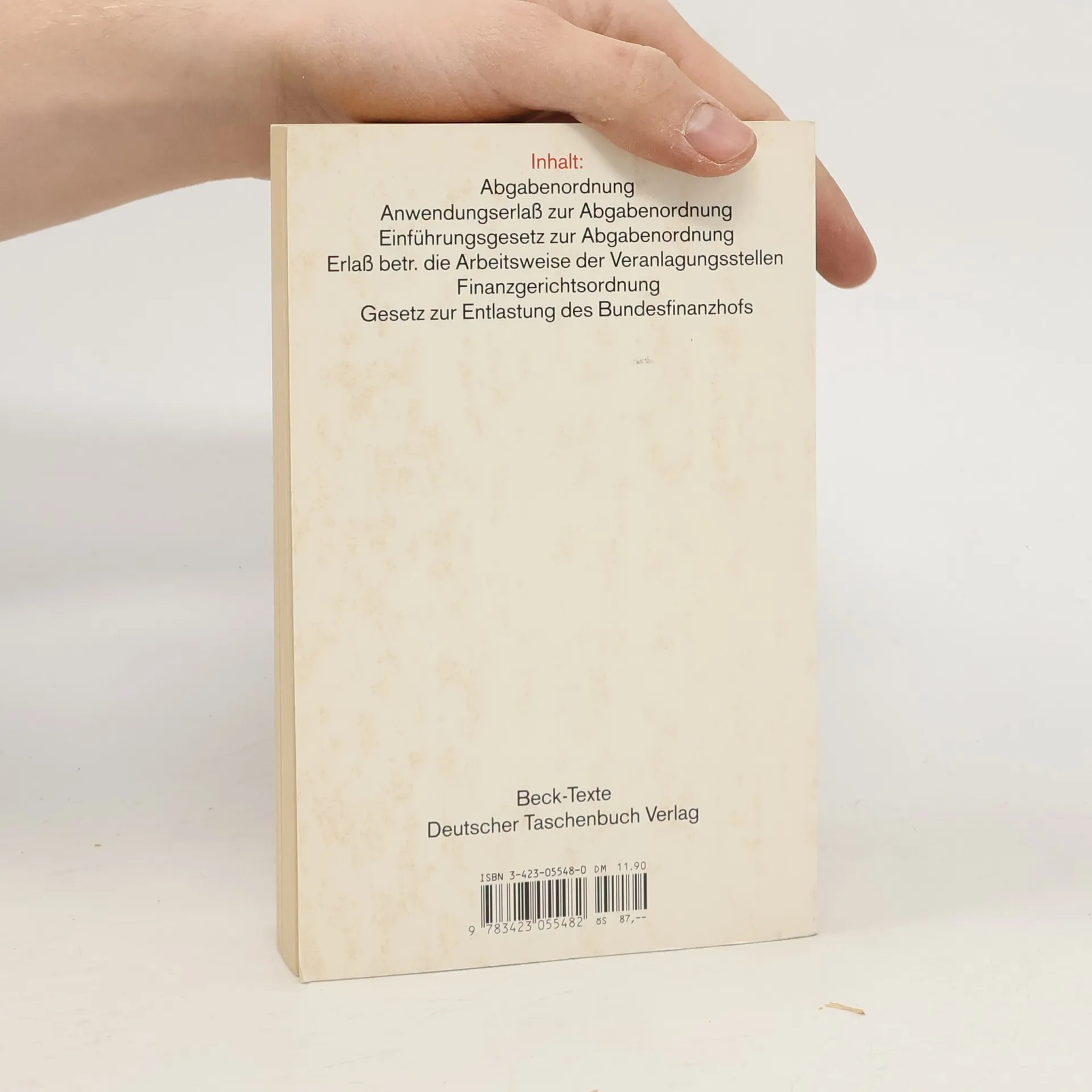 Inhalt Dieser Band enthält neben der Abgabenordnung auch das Einführungsgesetz zur Abgabenordnung, den Anwendungserlass zur Abgabenordnung sowie die Finanzgerichtsordnung. Neuauflage Die 47. Auflage bringt die Textausgabe auf den Stand 1. März 2023. Zielgruppe Für Steuerberatung, Wirtschaftsprüfung, Rechtsanwaltschaft, Richterschaft, Betriebe, Finanzverwaltung, Studierende, Referendarinnen und Referendare sowie Gemeinden.