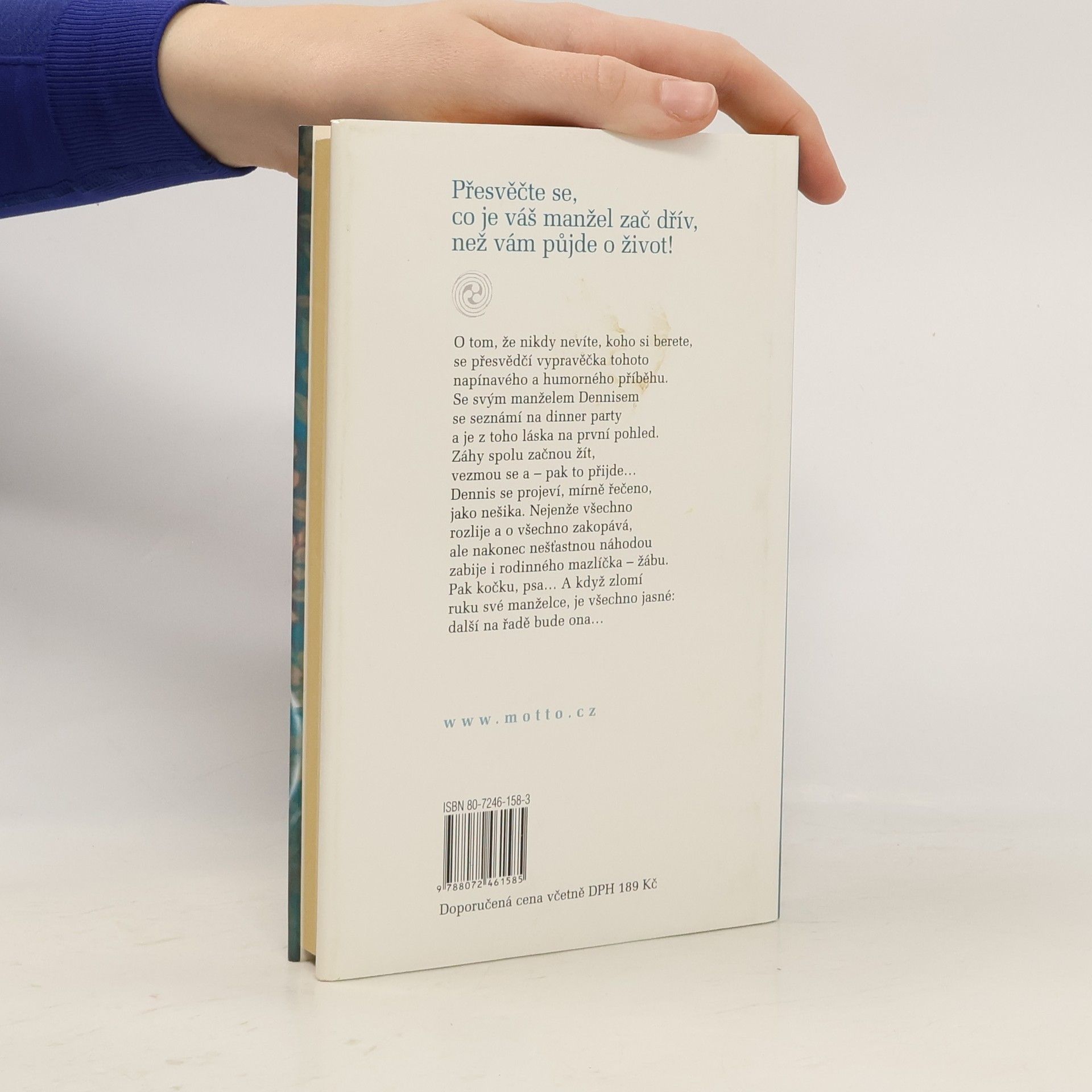 O tom, že nikdy nevíte, koho si berete, se přesvědčí vypravěčka tohoto napínavého a humorného příběhu. Se svým manželem Dennisem se seznámí na dinner party a je z toho láska na první pohled. Záhy spolu začnou žít, vezmou se a – pak to přijde... Dennis se projeví, mírně řečeno, jako nešika. Nejenže všechno rozlije a o všechno zakopává, ale nakonec nešťastnou náhodou zabije i rodinného mazlíčka – žábu. Pak kočku, psa... A když zlomí ruku své manželce, je všechno jasné : další na řadě bude ona...