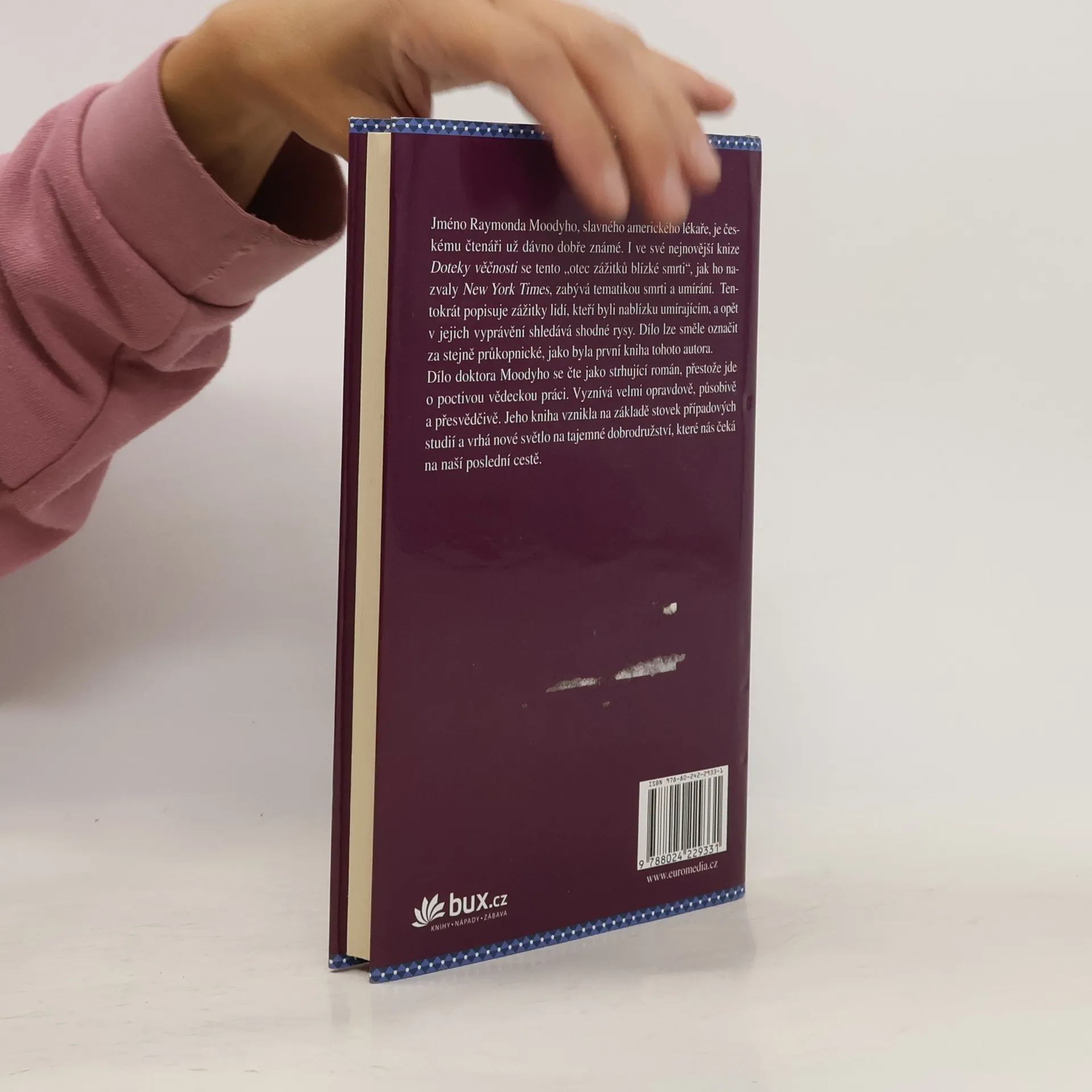 Co se s člověkem děje, když umírá? Je možné, aby tento zážitek sdílel s živými? I ve své nové knize Doteky věčnosti se Raymond Moody zabývá tematikou smrti a umírání a této fascinující otázce dává zcela nový směr. Spolu s P. Perrym totiž zkoumá „zážitky sdílené smrti“, při nichž mohou lidé, kteří jsou v přítomnosti umírajícího, nakrátko nahlédnout do onoho světa. Průkopnické dílo se čte jako strhující román.
