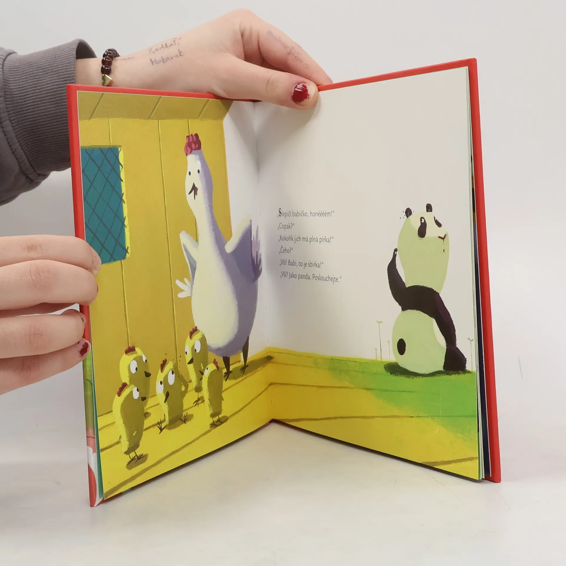 Umíte spočítat vši? Není to tak snadné, zvlášť když začnou jako splašené poskakovat v kožíšku nebohé pandy! Hop! Hop! Hop! Ve třídě se rychle utvoří hlouček: ovečka začne vši počítat, a než se naděje, přeskočí na ni. Přijde slon a začne počítat vši, které má ovečka. A tak dále... Paní učitelka už neví, kam se dřív podívat. Přestane se panda vrtět a podaří se jí odvšivit? Trpělivost, slepičí babička vám všechno poví!
