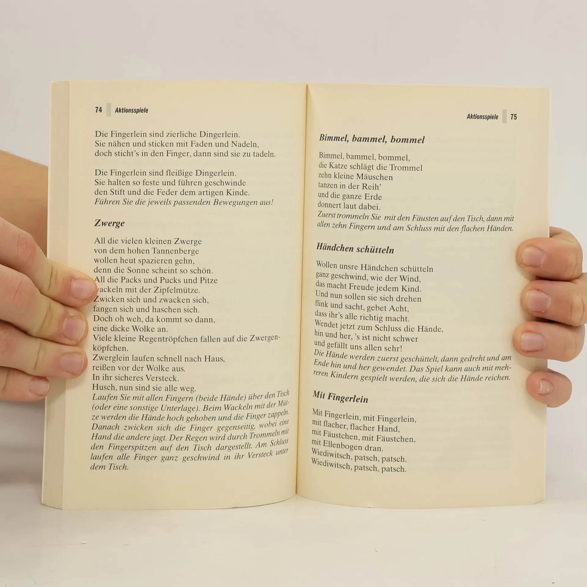 »Das ist der Daumen, der schüttelt die Pflaumen ...« – ein Fingerspiel, das jeder aus seiner Kindheit kennt. Das geschickte Verbinden von Reimen und Fingerbewegungen fasziniert jedes Kind. Bernd Brucker weiß, wie viel Spaß die Kleinen dabei haben können, und hat neue und klassische Varianten zusammengestellt. Ausstattung: mit zahlreichen sw-Illustrationen