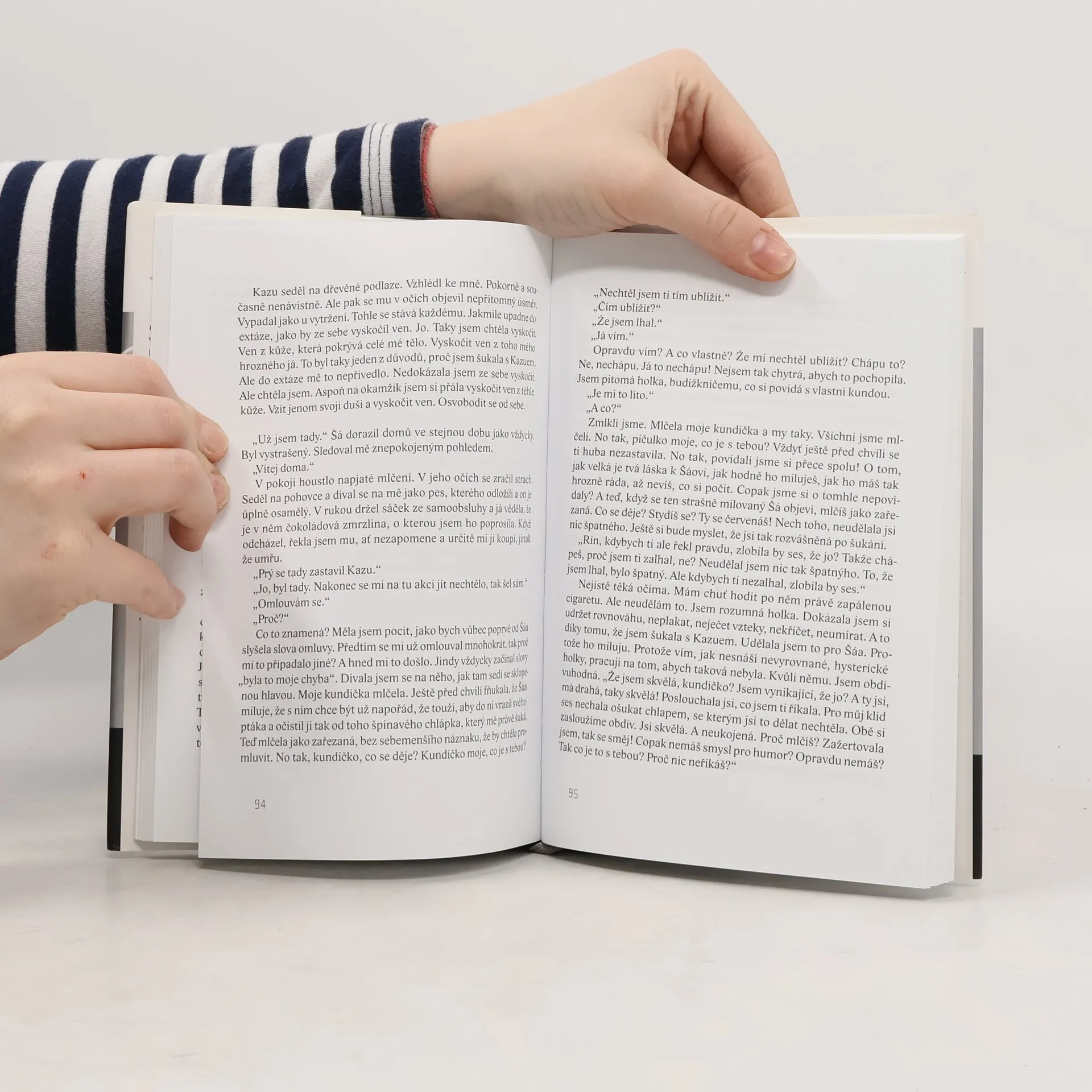 Román až s cynickou otevřeností vypovídá o současné japonské mladé generaci. Násilí, náhodný sex, drogy, totální deziluze... Hrdinkou zčásti autobiografické knihy je mladičká spisovatelka Rin, kterou její nakladatelství požádá, aby napsala knihu sama o sobě. Samotný děj se odehrává v několika časových rovinách - nejprve v reálném čase, poté v retrospektivě předchozích let jejího života. V každém z těchto období je Rin pohlcena spalujícím milostným vztahem plným lásky, nenávisti a především žárlivosti.