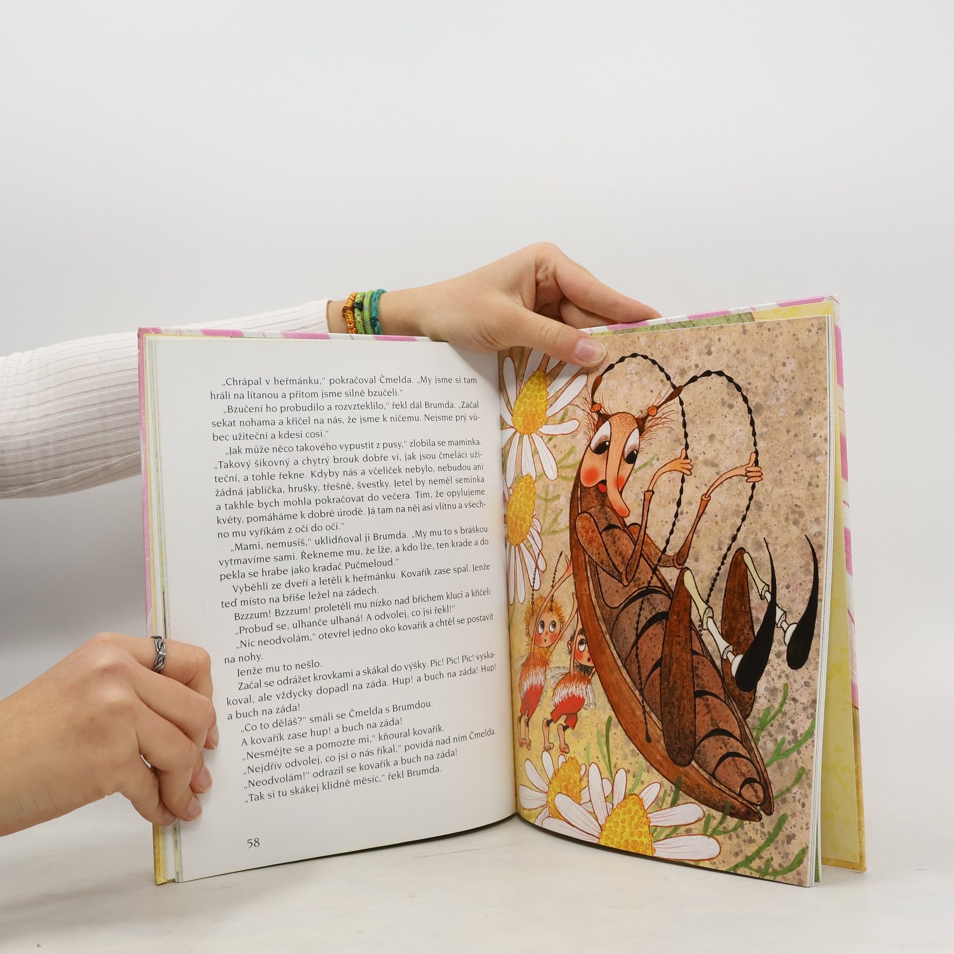 Po dlouhé zimě se sluníčko konečně rozkoukalo a svítilo, jak se sluší a patří. Hřálo a tahalo ze země kytičku za kytičkou. Žlutou, modrou, červenou, růžovou, fialovou a taky strakatou. Celá mez rozkvetla a čmeláčí maminka od rána uklízela. V chaloupce to vonělo jako o posvícení... A co dělají Čmelda a Brumda, jakpak se mají? To vám prozradí nová knížka o starých známých včelích medvídcích, která volně navazuje na dvě předchozí. Veselé krátké příběhy jsou však nejen o nich, ale i o jejich kamarádech z říše hmyzu.