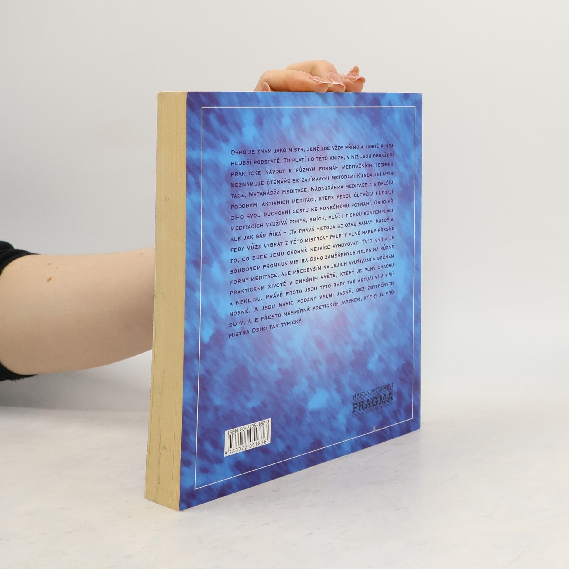 Osho je znám jako mistr, jenž jde vždy přímo a jasně k nejhlubší podstatě. To platí i o této knize, v níž jsou obsaženy praktické návody k různým formám meditačních technik. Seznamuje čtenáře se zajímavými metodami Kundaliní meditace, Natarádža meditace, Nádabráhma meditace a s dalšími podobami aktivní meditace.